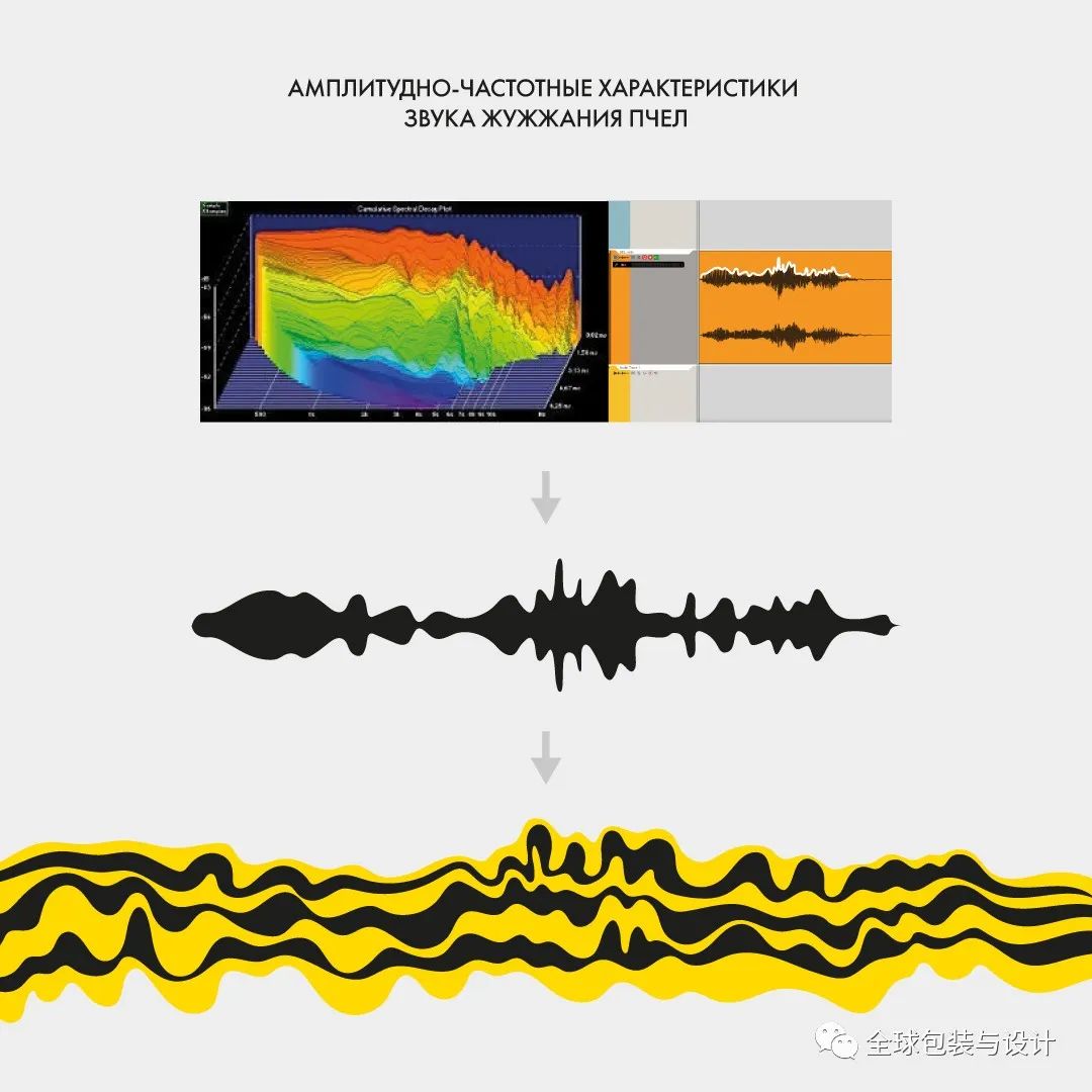 在音樂(lè)編輯的幫助下將蜜蜂的嗡嗡聲轉(zhuǎn)化成圖表,創(chuàng)造了這樣一個(gè)奇妙的圖案,同時(shí)不同于其他任何東西,也不同于蜂蜜主題。