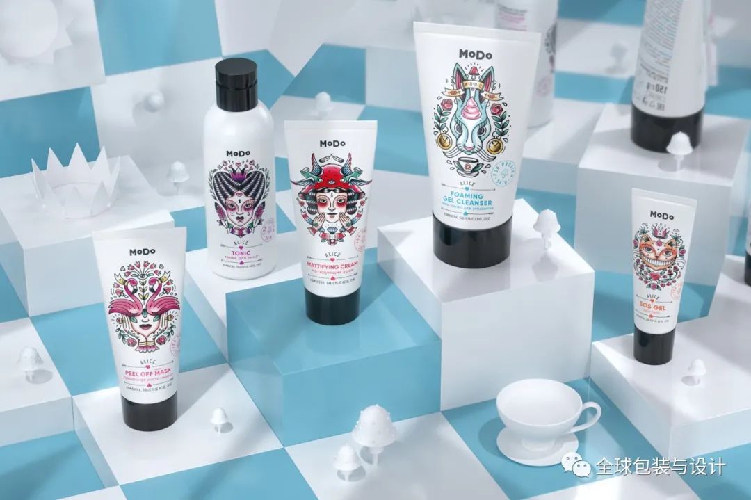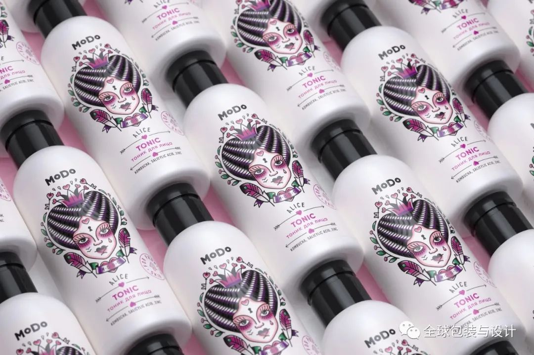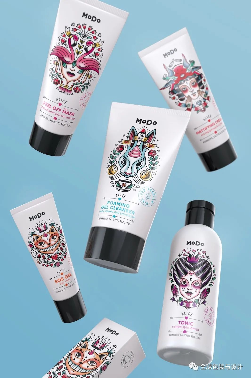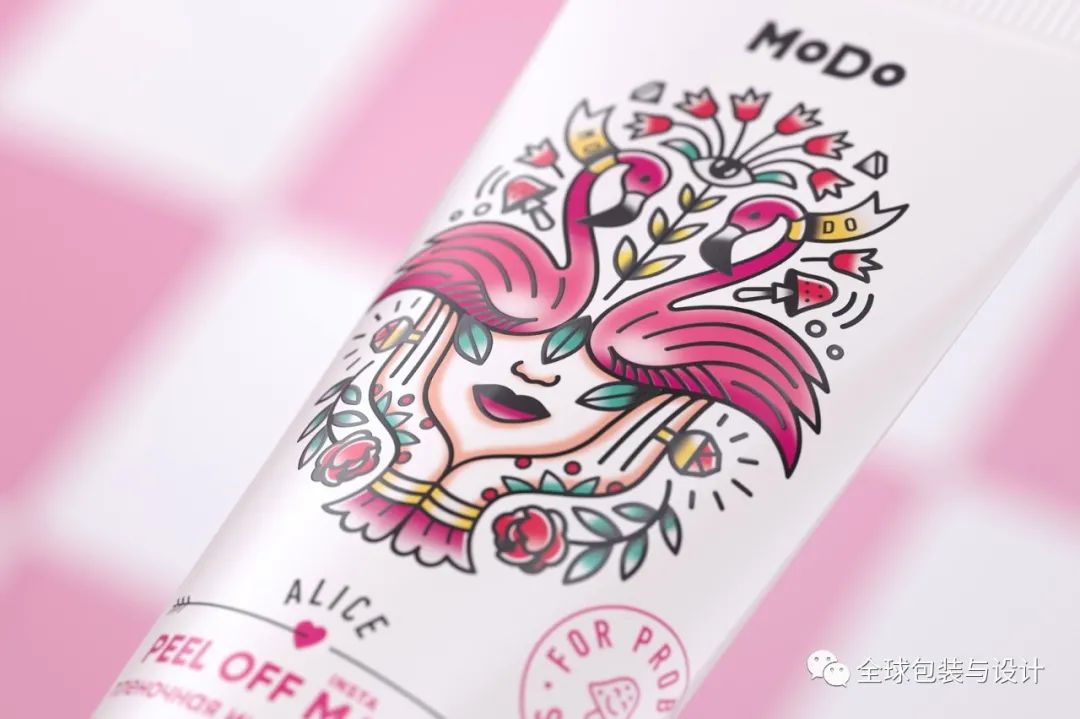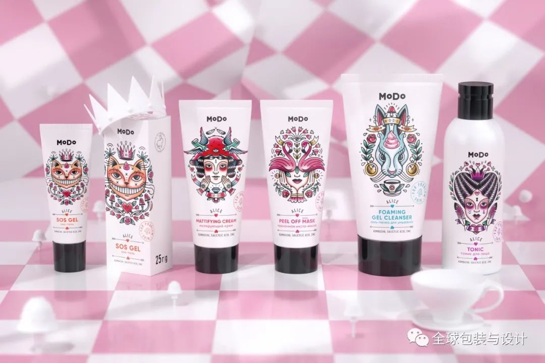 MoDo愛(ài)麗絲系列是基于童話故事“愛(ài)麗絲夢(mèng)游仙境”。在包裝上,你可以看到英雄形象-柴郡貓,紅心皇后,白兔,火烈鳥(niǎo)。角色的現(xiàn)代風(fēng)格讓人聯(lián)想到老式的紋身。黑色密集輪廓和明亮的梯度是這類圖像的典型特征。