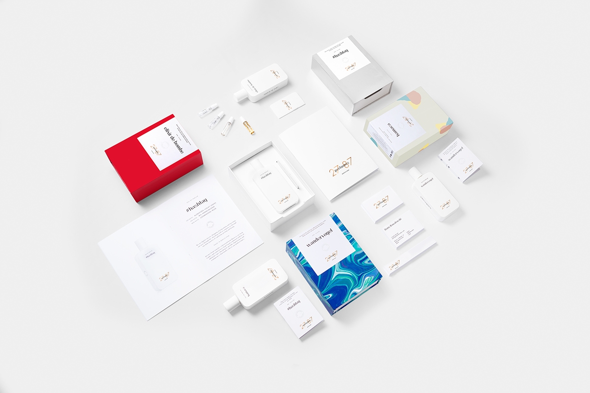 最后,包裝設(shè)計(jì)的靈感來自于每個(gè)香水的概念:一個(gè)來自工作室的地理和多彩的抽象概念。盡管所有這些都使用相同的結(jié)構(gòu)設(shè)計(jì)來確保一致性,但包裝是設(shè)計(jì)和探索新的視覺資源與藝術(shù)家合作的最佳場(chǎng)所。