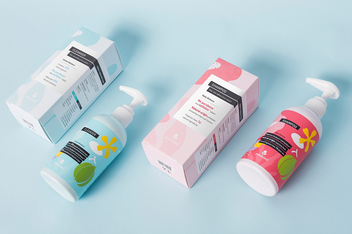 桃子的個人護理品擁有自然的線條和顏色明亮及清爽的包裝設(shè)計,即包括一個相當(dāng)于兒童情感的包裝平面視覺設(shè)計。