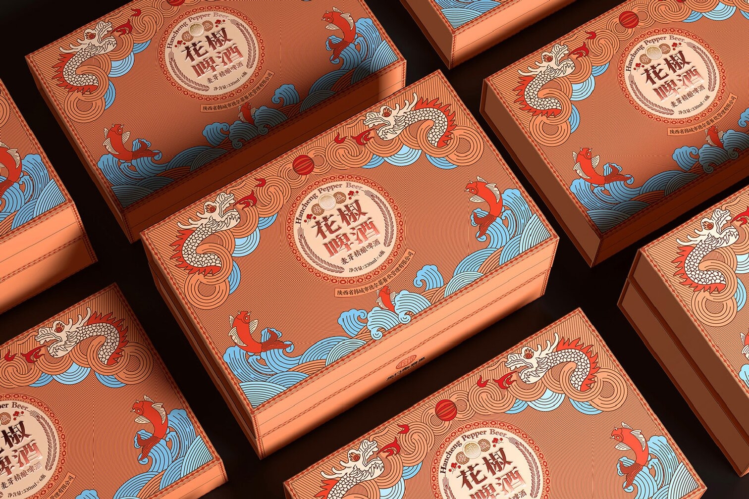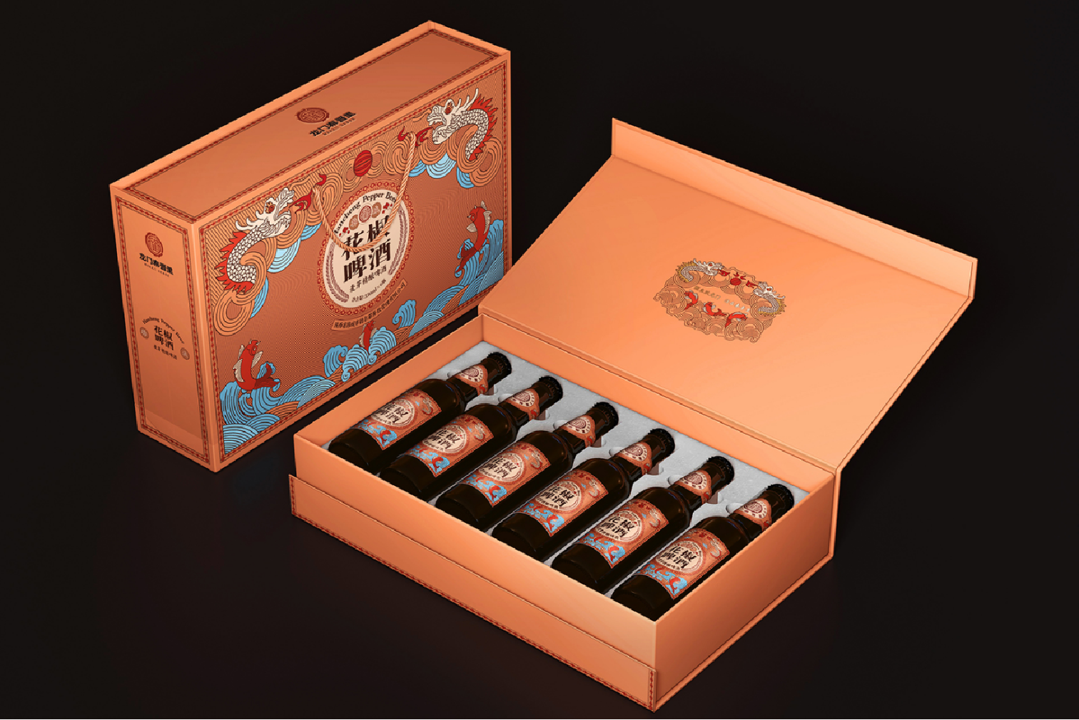 通過(guò)紅綠兩色顯著地表達(dá)了啤酒口感的濃度、及啤酒風(fēng)味。運(yùn)用燙金擊凸等印刷工藝,它的畫龍點(diǎn)睛的作用,使產(chǎn)品更精美、更有視覺(jué)感染力。