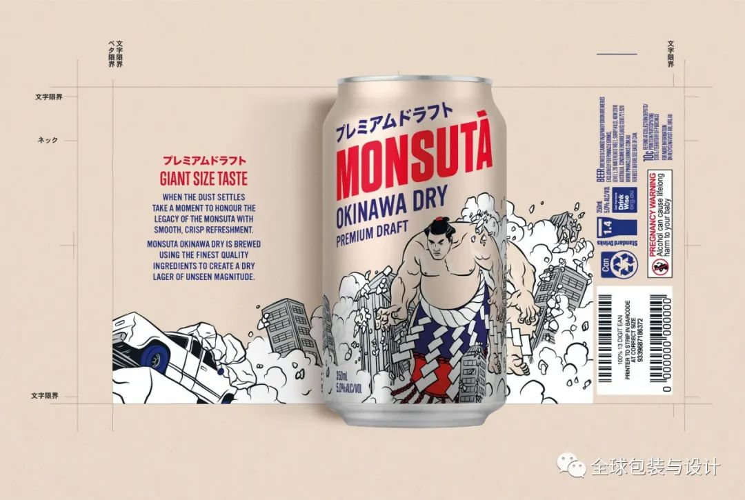 Monsuta是一個出口到其他國家的日本品牌,旨在吸引尋求更獨(dú)特啤酒品牌的新型啤酒消費(fèi)者。采用日本排版和插圖風(fēng)格,粗體濃縮斜體被用來捕捉動態(tài)的日本風(fēng)格,強(qiáng)烈的主要紅色,藍(lán)色。為了軟化大膽的調(diào)色板,使用米色背景色來平衡更傳統(tǒng)的動漫風(fēng)格。