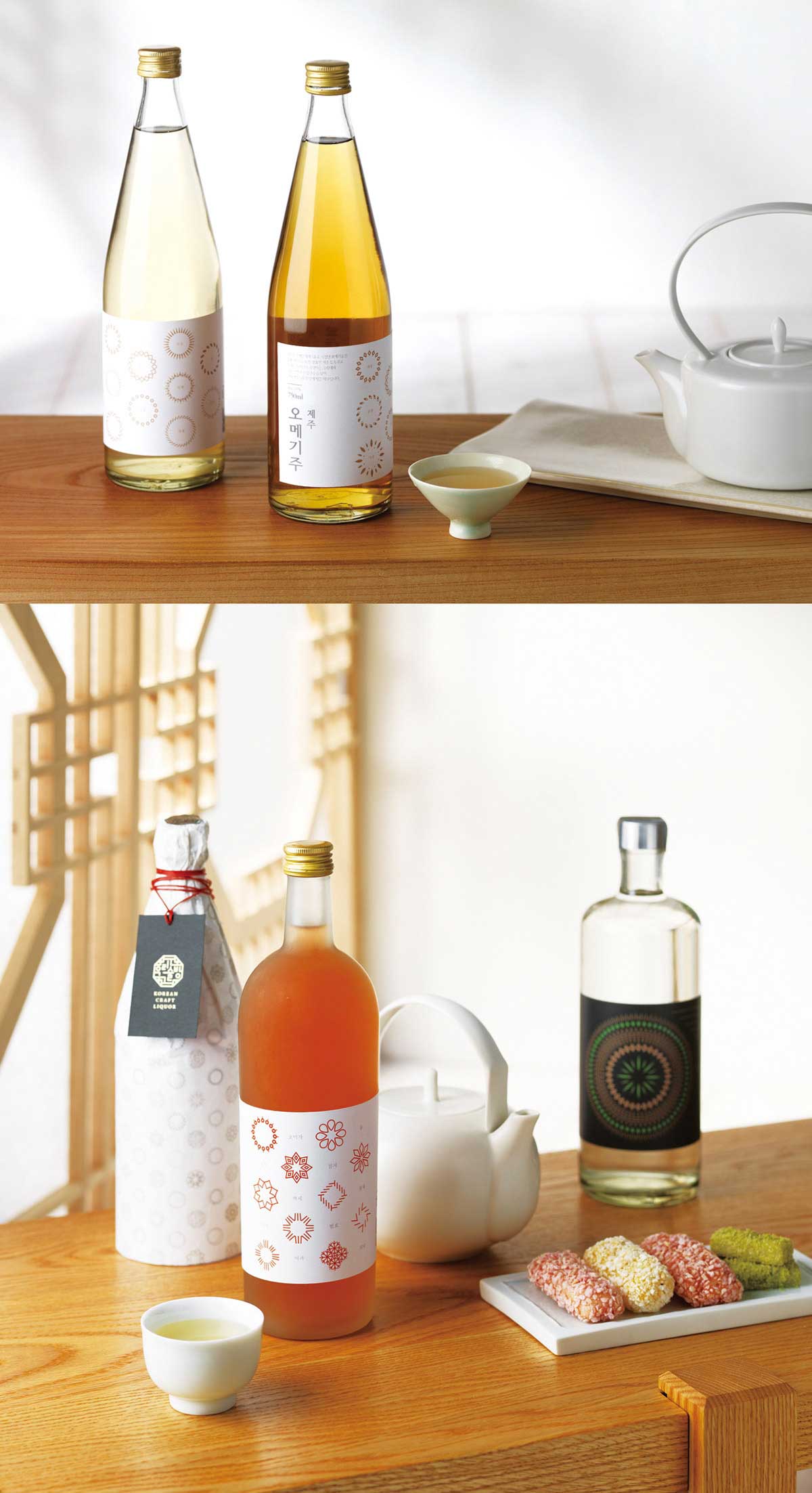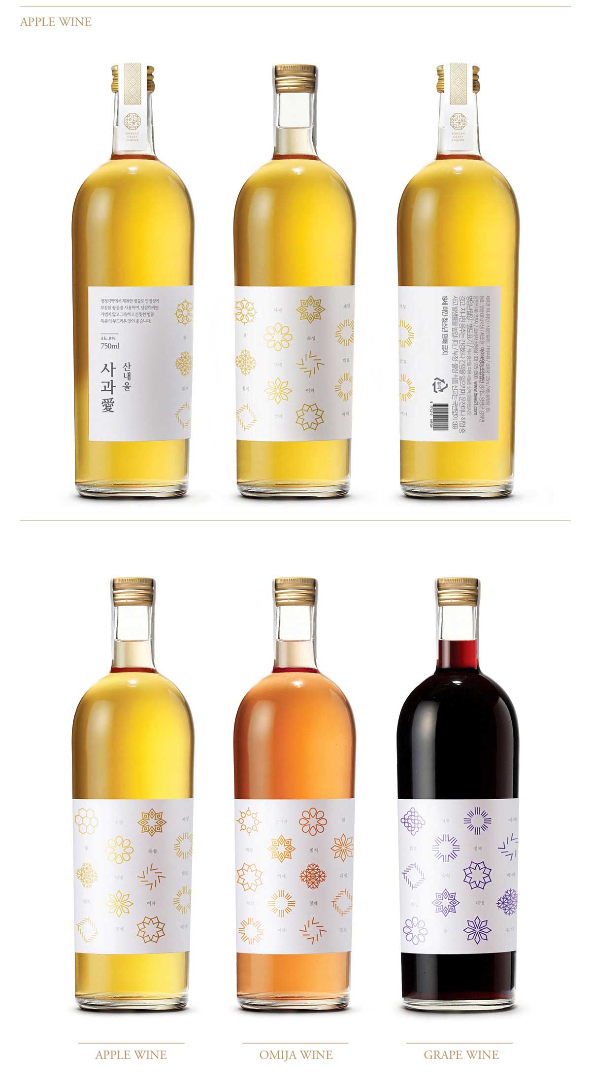 韓國傳統(tǒng)酒可以分為三大類:水果酒、米酒和蒸餾酒。不應該將三類酒產(chǎn)品結(jié)合在一起作為一個單一的包裝外觀設計,我們需要針對于每一款的產(chǎn)品做相對應的包裝設計。已達到產(chǎn)品的特殊性。