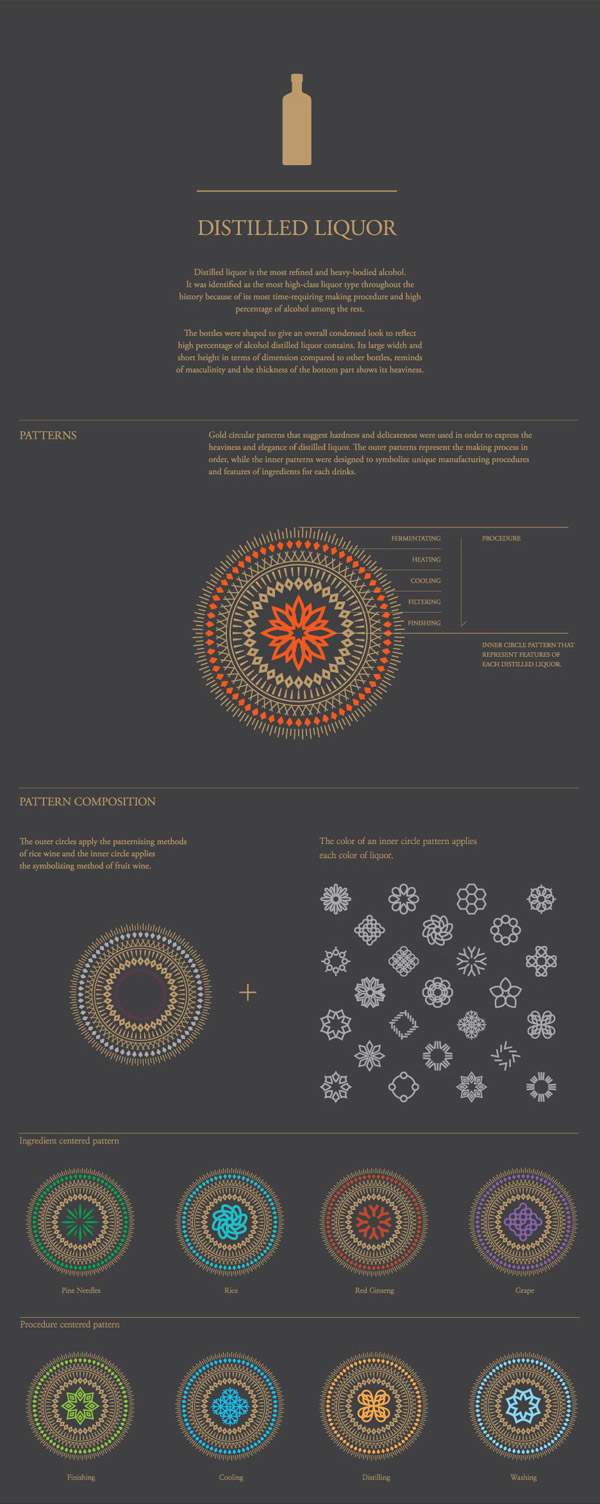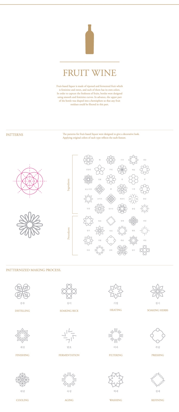 基于韓國傳統(tǒng)酒歷史的設計理念主要集中在味道,氣味和顏色的印象。
