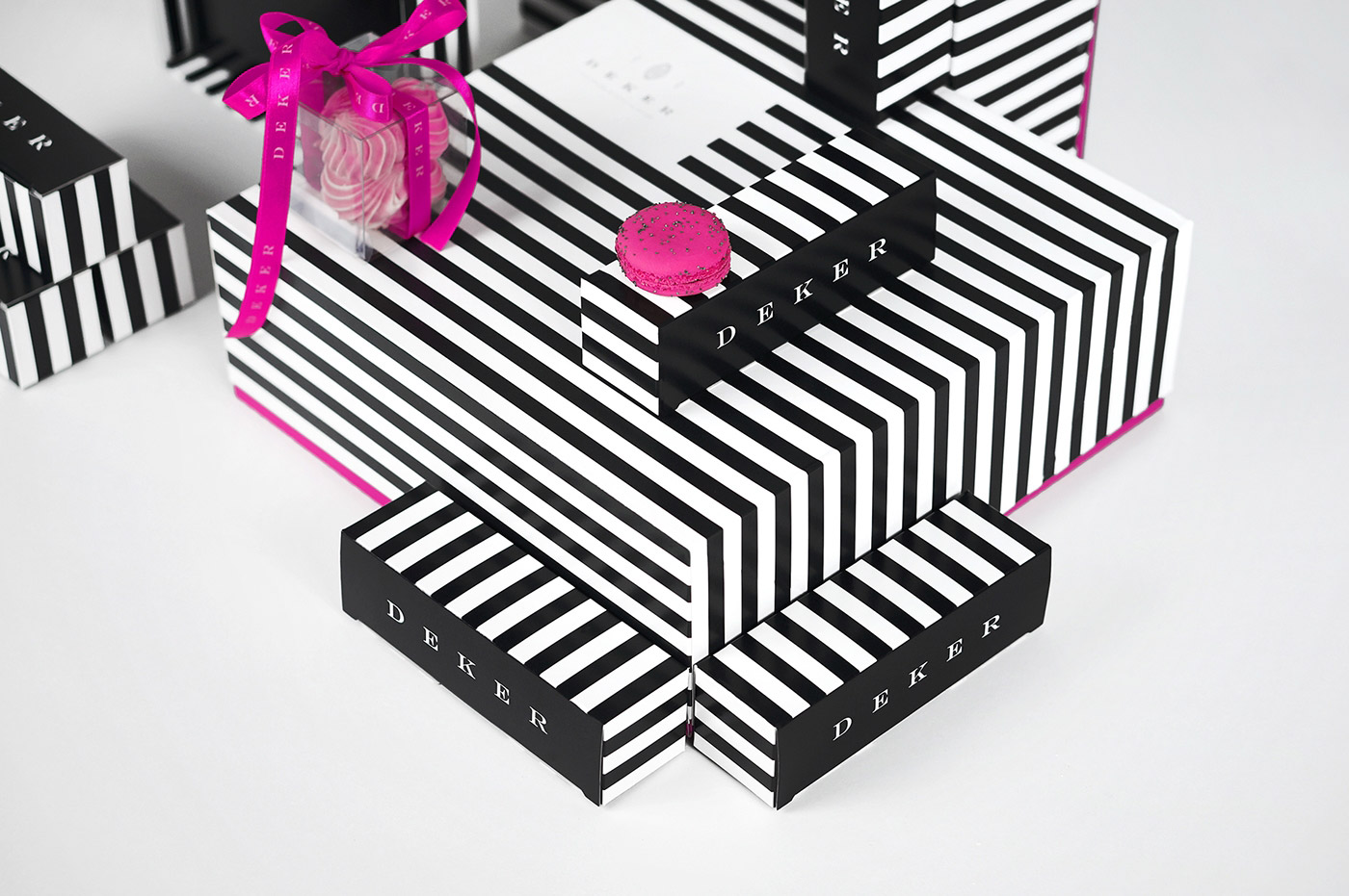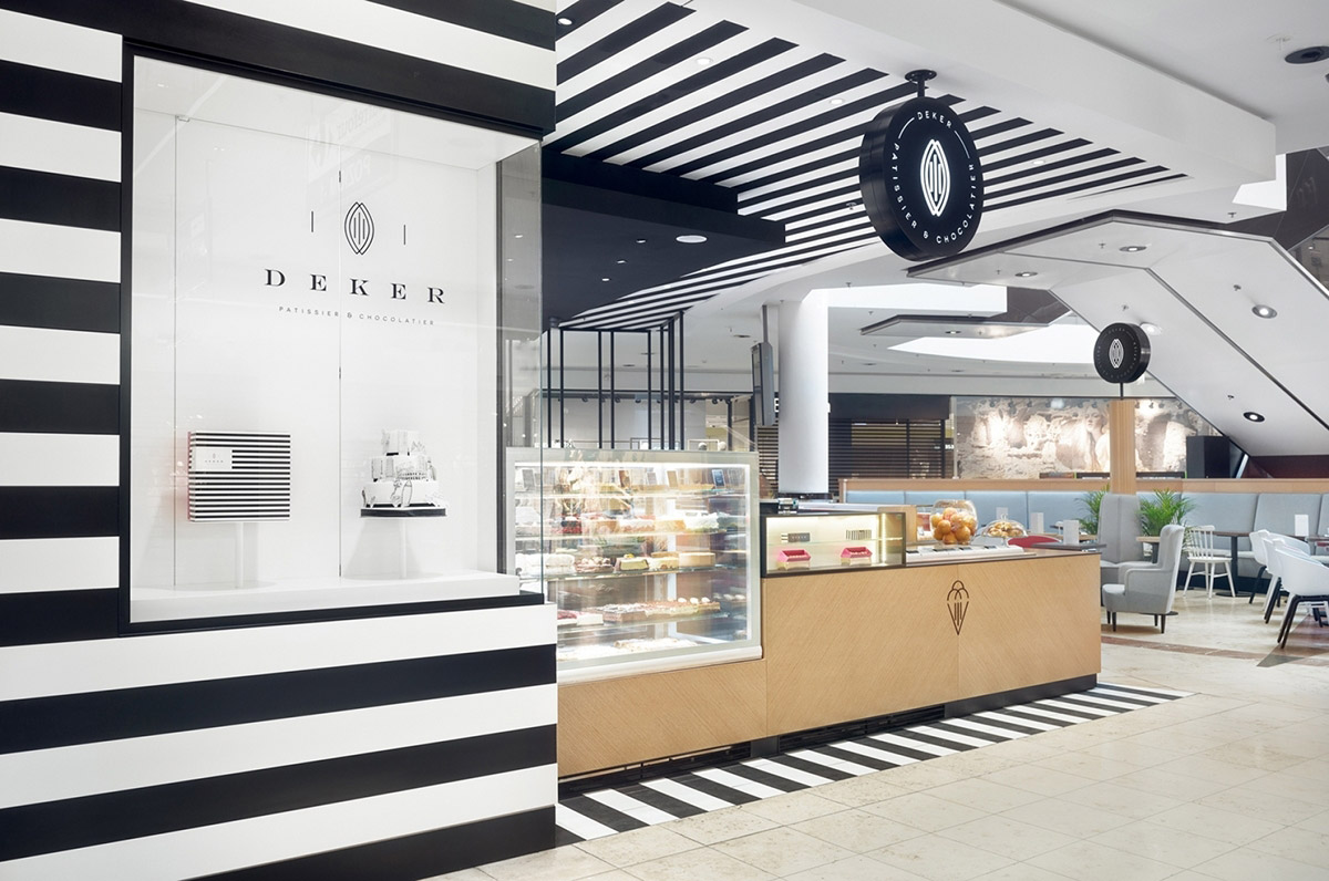 德科爾甜品是位于波蘭的領(lǐng)先糖果和咖啡連鎖店。 設(shè)計師設(shè)計的這些道道杠杠,代表了完整的品牌強視覺,從包裝,促銷對象到室內(nèi)設(shè)計理念都貫徹了這一強視覺符號