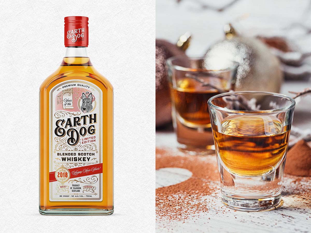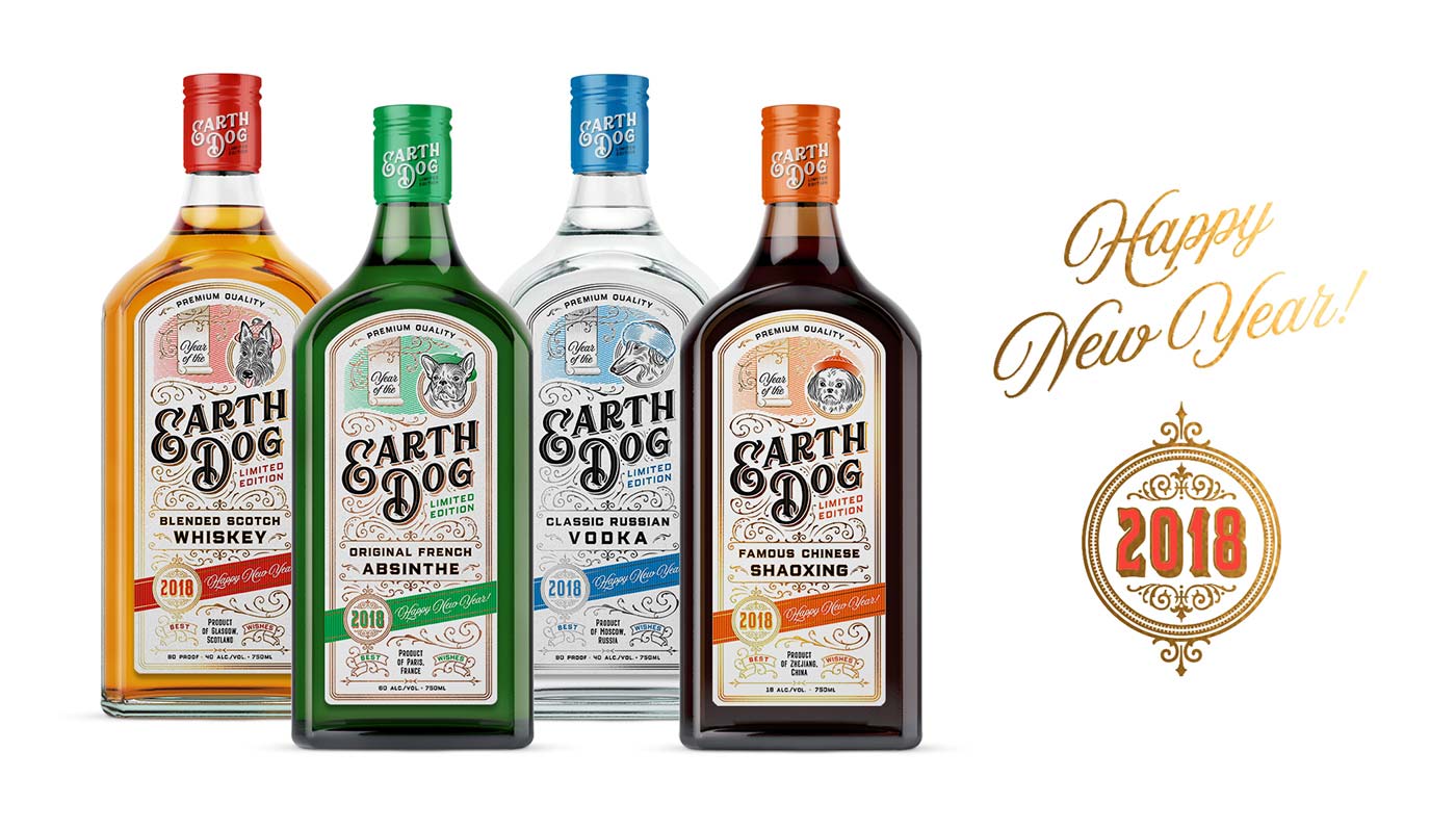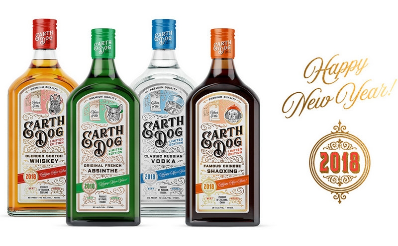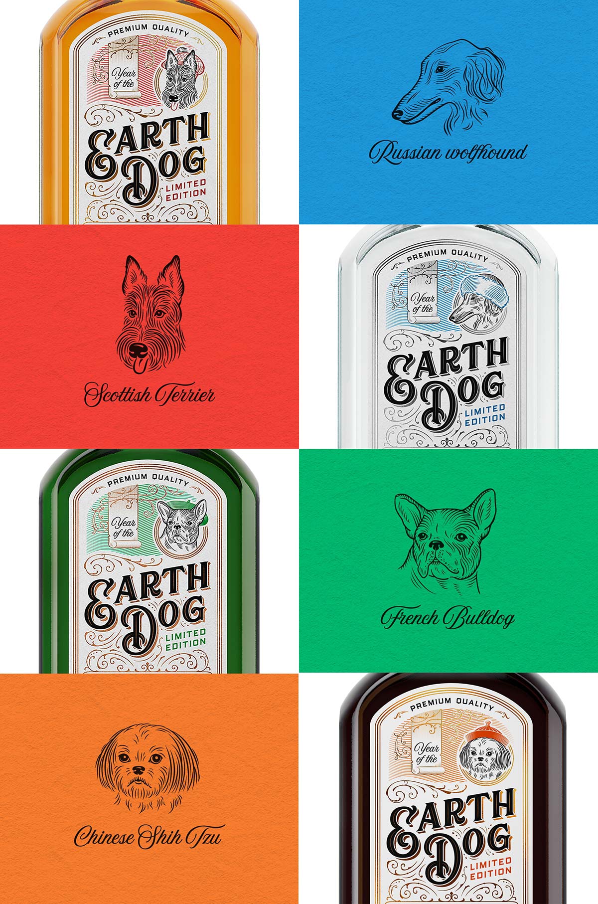這個(gè)項(xiàng)目的靈感來自于2018年的象征–地球犬(中國十二生肖)和圣誕賀卡。這個(gè)概念包括限量版的3種傳統(tǒng)烈酒–蘇格蘭威士忌、俄羅斯伏特加和法國苦艾酒。每只狗的品種都與精神之國——蘇格蘭犬、俄羅斯獵狼犬和法國斗牛犬相當(dāng)。