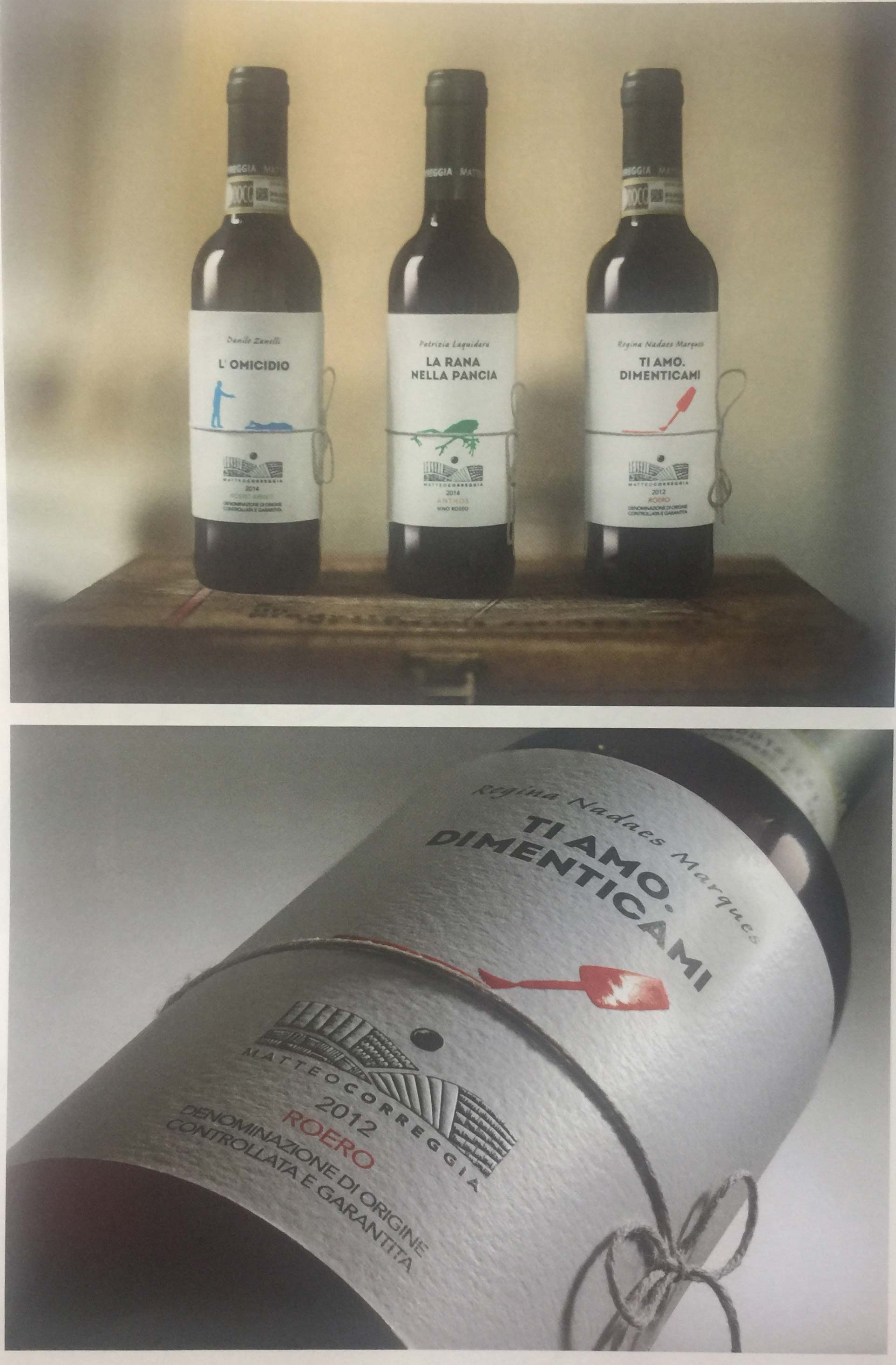 當上好的葡萄酒與文學的樂趣相遇,便成就了這款葡萄酒系列產(chǎn)品。這個葡萄酒系列的名字令人回味,是由兩個意大利詞語libro(書)和bottliglia(瓶子)組成的。這一系列的葡萄酒以其新穎的“標簽書”為特征:一本作為瓶身標簽使用的小巧、雅致的書。每則故事的封面上都繪有一幅標志著故事重要時刻的插畫:一個人射殺了另一個人,一只跳躍的青蛙和指甲油條紋。這些用Adobe lllustrato軟件繪制的插畫具有簡約、現(xiàn)代的風格??鋸埖脑煨秃蜐饬业纳蕵?gòu)成了葡萄酒標簽的圖案。事實上,這些插畫使人回想起常見于20世紀50年代低俗小說短篇故事中的方法。為了提升感官和觸覺體驗,設(shè)計師對這些插畫進行了UV處理,并將其印制在帶有紋理的紙上。