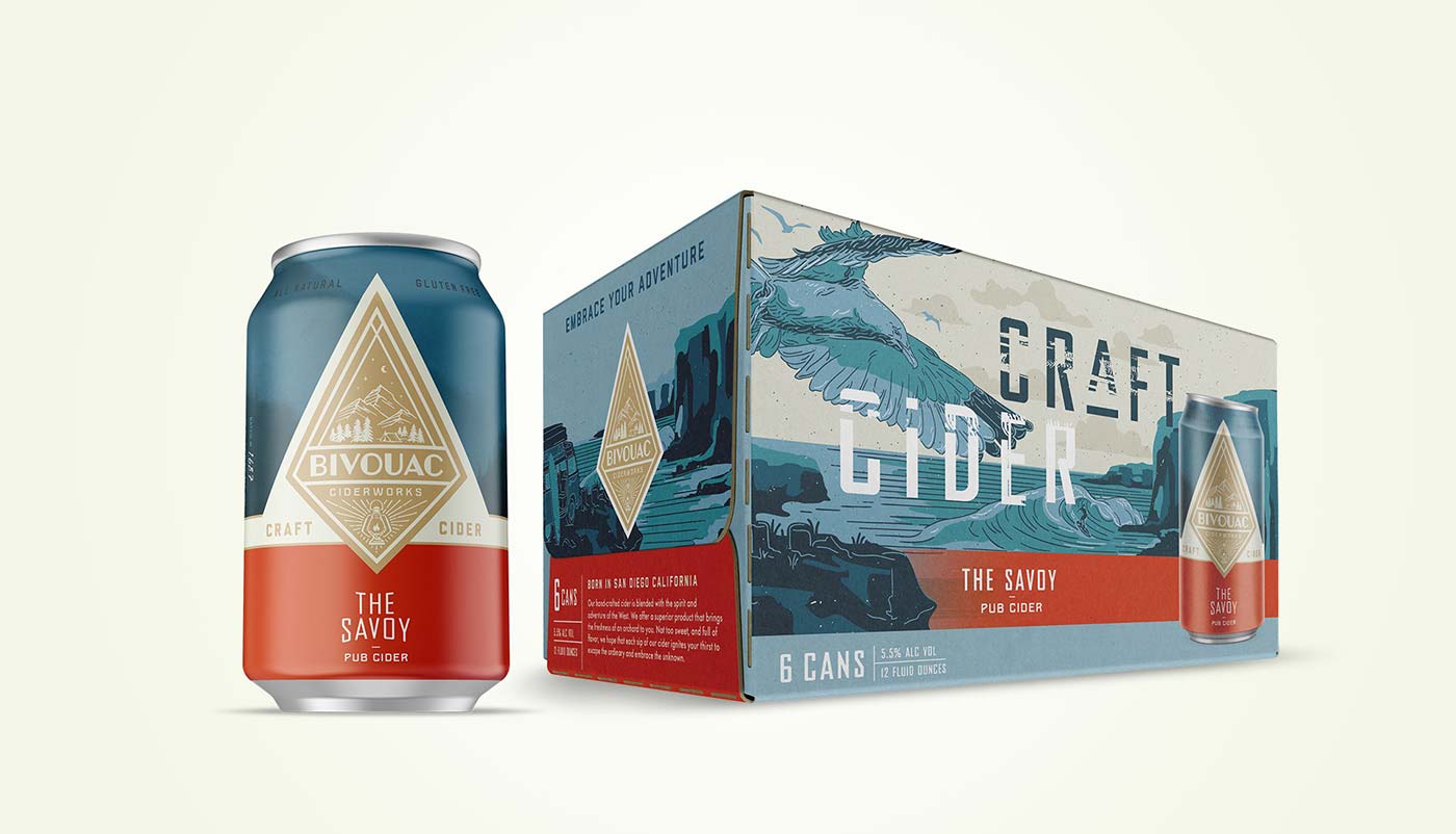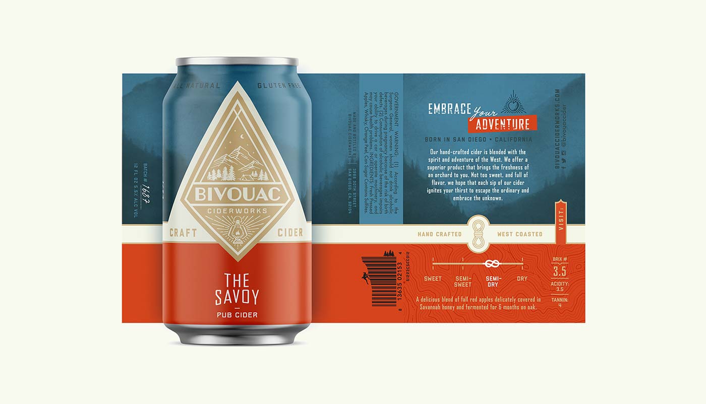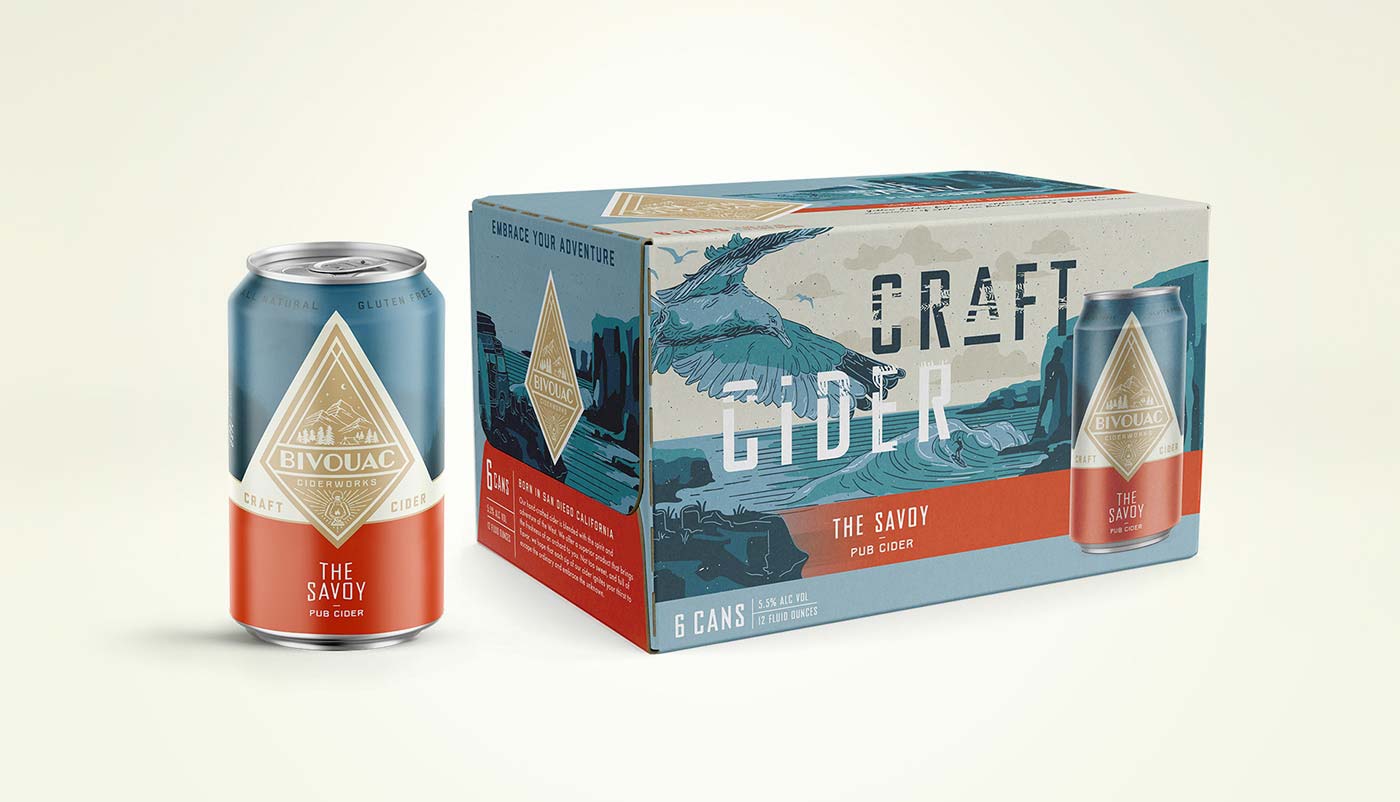 露營地或臨時(shí)住所,一個(gè)完美的飲料品牌名字。捕捉這種戶外生活方式是該飲料品牌的精神。品牌代理機(jī)構(gòu),圣地亞哥釀酒師馬修·奧斯汀(Matthew Austin)與品牌包裝設(shè)計(jì)公司接洽,幫助打造出一種硬蘋果酒品牌,它體現(xiàn)了SoCal的冒險(xiǎn)精神,但也足夠成熟,能夠吸引大眾。包裝設(shè)計(jì)師利用了Bivouac Ciderworks許多消費(fèi)者接觸點(diǎn),通過主題拷貝、插圖和工件,有機(jī)地傳遞其獨(dú)特的品牌聲音和本質(zhì)。除了包裝之外,包裝設(shè)計(jì)公司還幫助其餐廳和酒吧塑造消費(fèi)者體驗(yàn),讓當(dāng)?shù)厝丝梢砸贿呄碛靡淮蟊蔡O果酒,一邊逃離平凡,擁抱未知。
