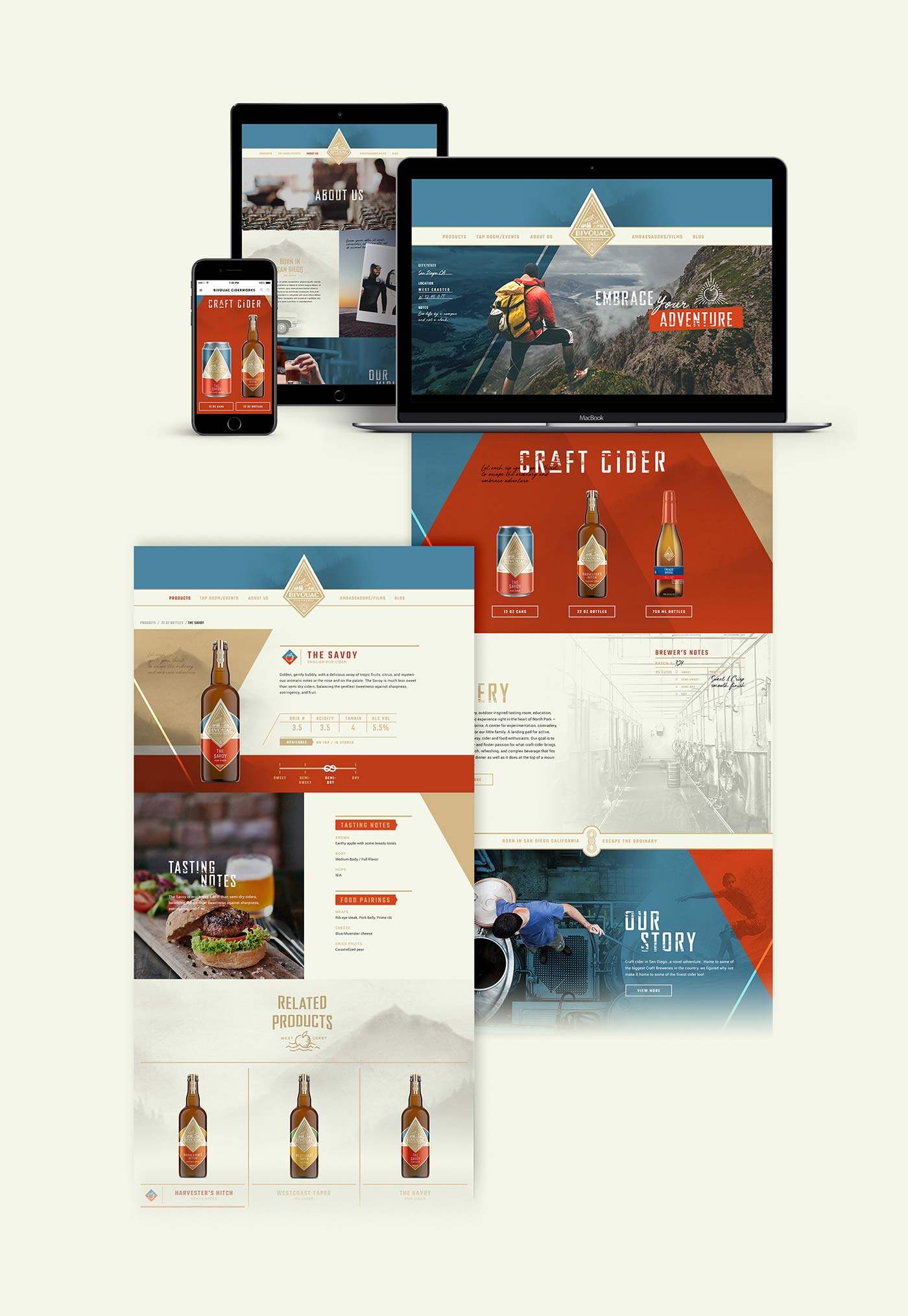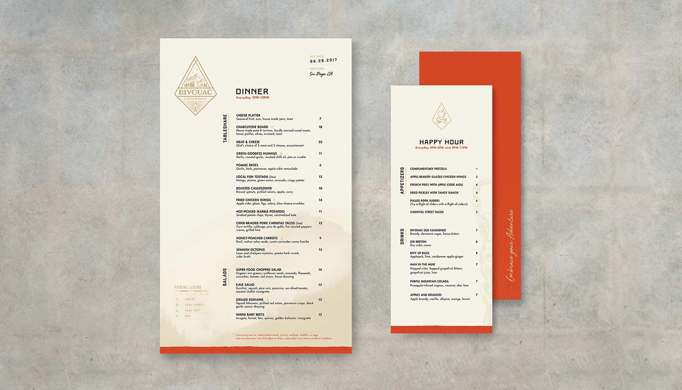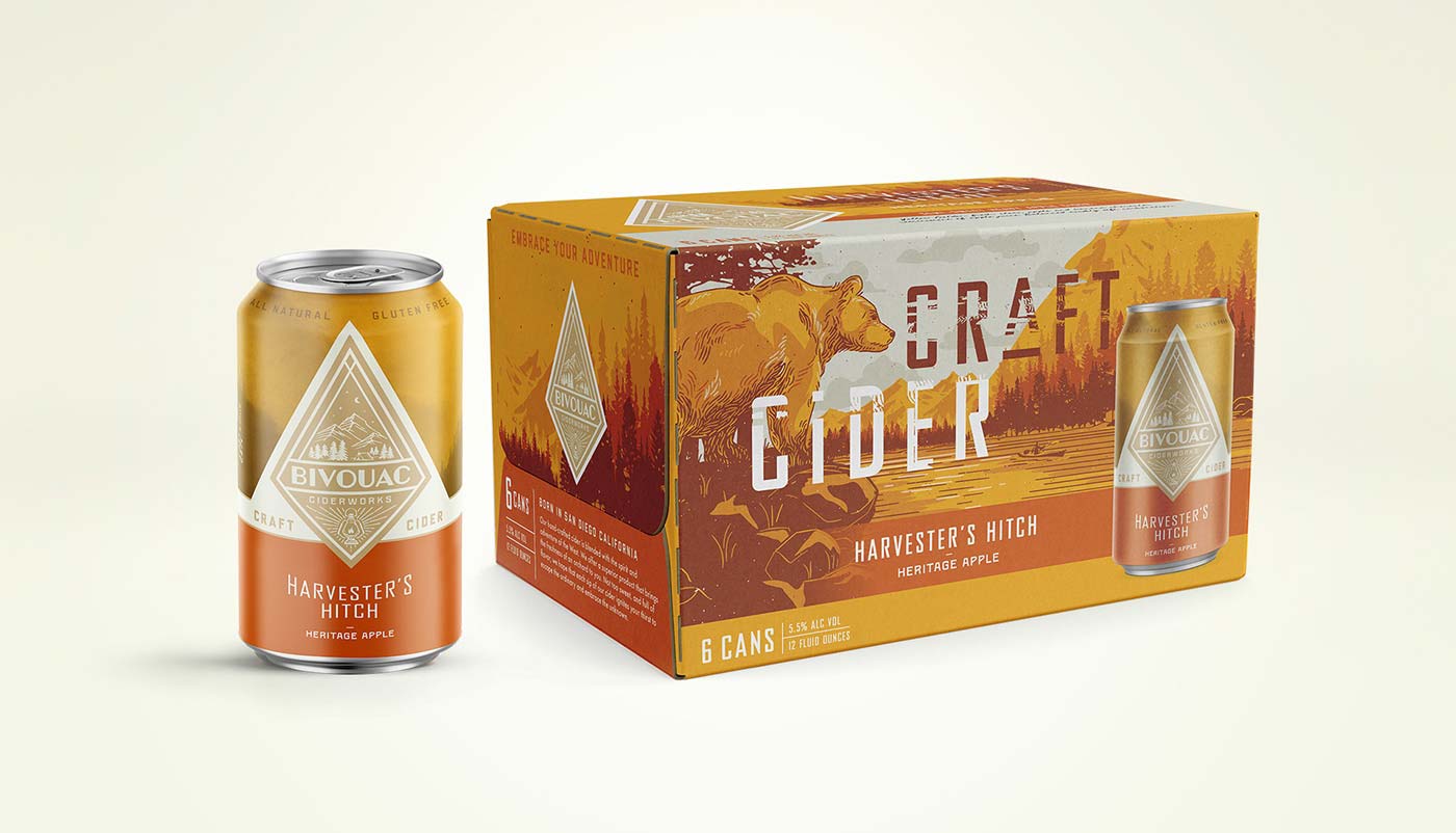 露營地或臨時(shí)住所,一個(gè)完美的飲料品牌名字。捕捉這種戶外生活方式是該飲料品牌的精神。品牌代理機(jī)構(gòu),圣地亞哥釀酒師馬修·奧斯汀(Matthew Austin)與品牌包裝設(shè)計(jì)公司接洽,幫助打造出一種硬蘋果酒品牌,它體現(xiàn)了SoCal的冒險(xiǎn)精神,但也足夠成熟,能夠吸引大眾。包裝設(shè)計(jì)師利用了Bivouac Ciderworks許多消費(fèi)者接觸點(diǎn),通過主題拷貝、插圖和工件,有機(jī)地傳遞其獨(dú)特的品牌聲音和本質(zhì)。除了包裝之外,包裝設(shè)計(jì)公司還幫助其餐廳和酒吧塑造消費(fèi)者體驗(yàn),讓當(dāng)?shù)厝丝梢砸贿呄碛靡淮蟊蔡O果酒,一邊逃離平凡,擁抱未知。