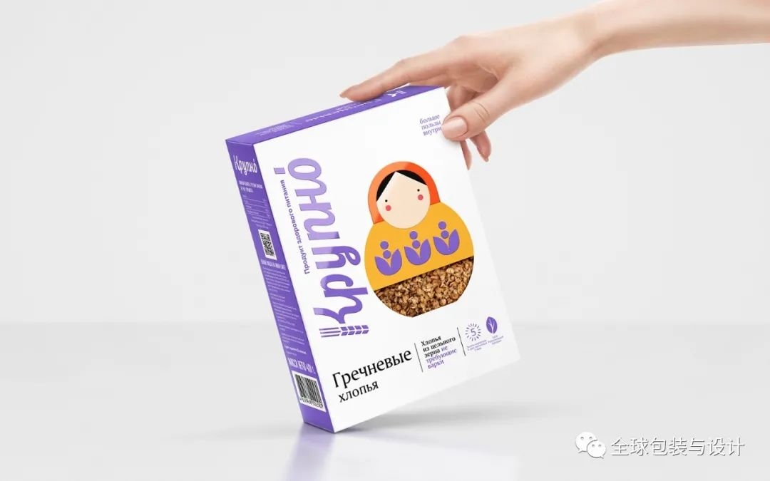 目前的市場參與者主要使用與麥田、自然和其他典型類別標(biāo)志相同的視覺包裝圖案。因此,決定避免同樣的方法,創(chuàng)造一個(gè)具有獨(dú)特概念和強(qiáng)大品牌視覺模式的品牌。主要目的是獲得自然和消費(fèi)者效用的概念,使用俄羅斯嵌套娃娃的比喻,它不僅在俄羅斯非常流行,而且在世界各地都很有名。套娃是母性、家庭和生育的象征,而且總是手工制作的。它表達(dá)的是品牌理念——每個(gè)玉米里面都有更多的好處。
