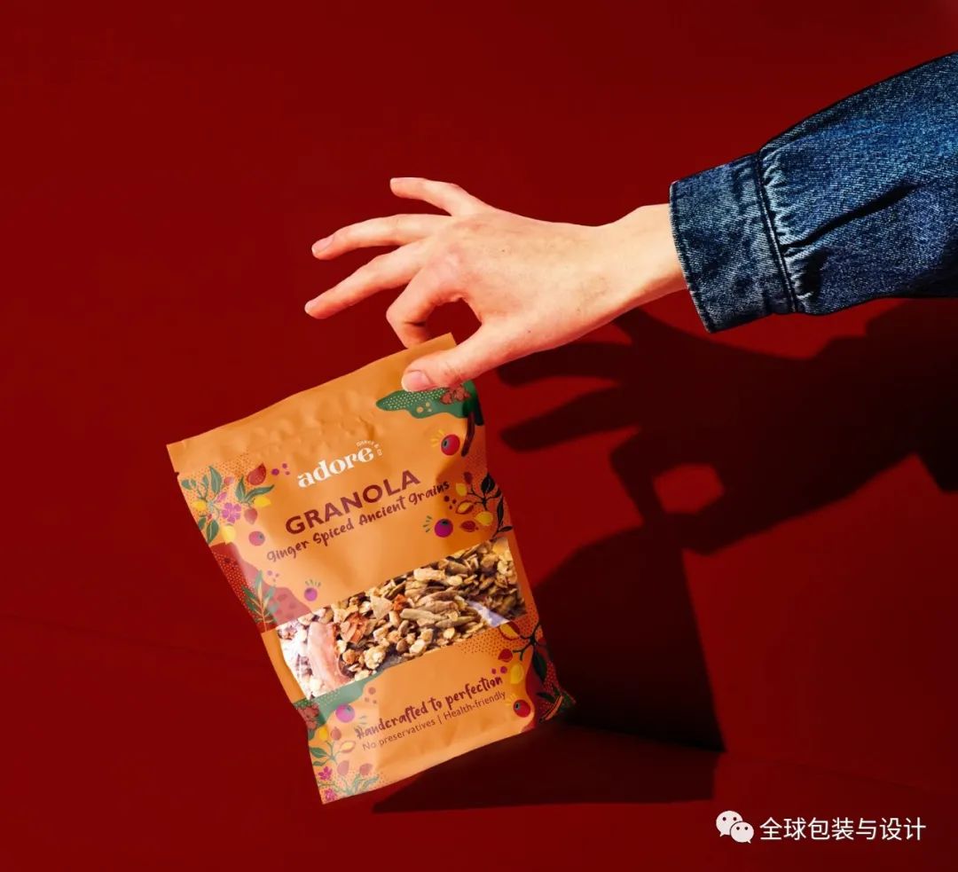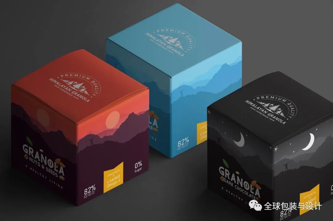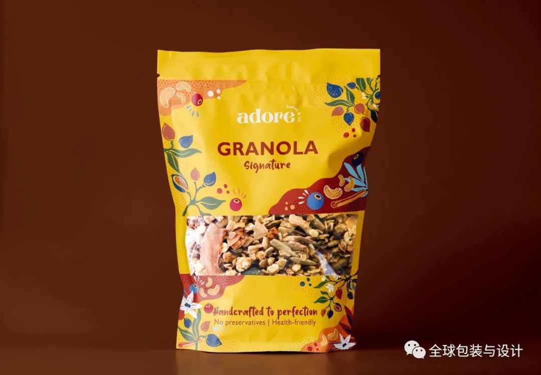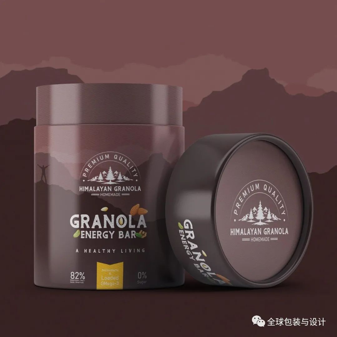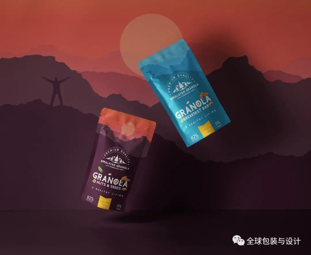品牌的靈感來自帶有現(xiàn)代氣息的前衛(wèi)審美。它意味著有趣和高級。一個(gè)充滿活力的調(diào)色板被用來根據(jù)口味的變化來吸引人們對包裝的注意。配以格蘭諾拉麥片成分的醒目插圖。