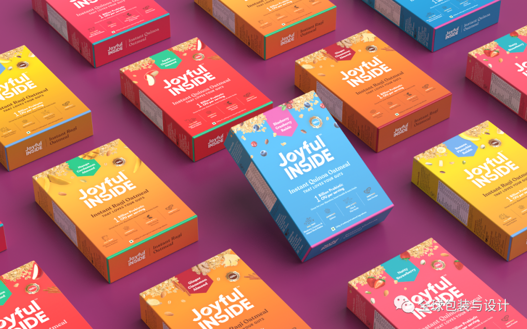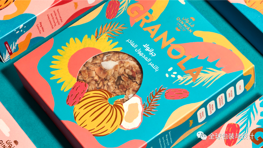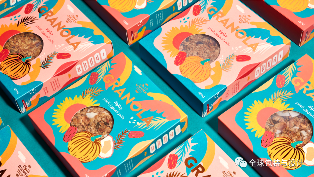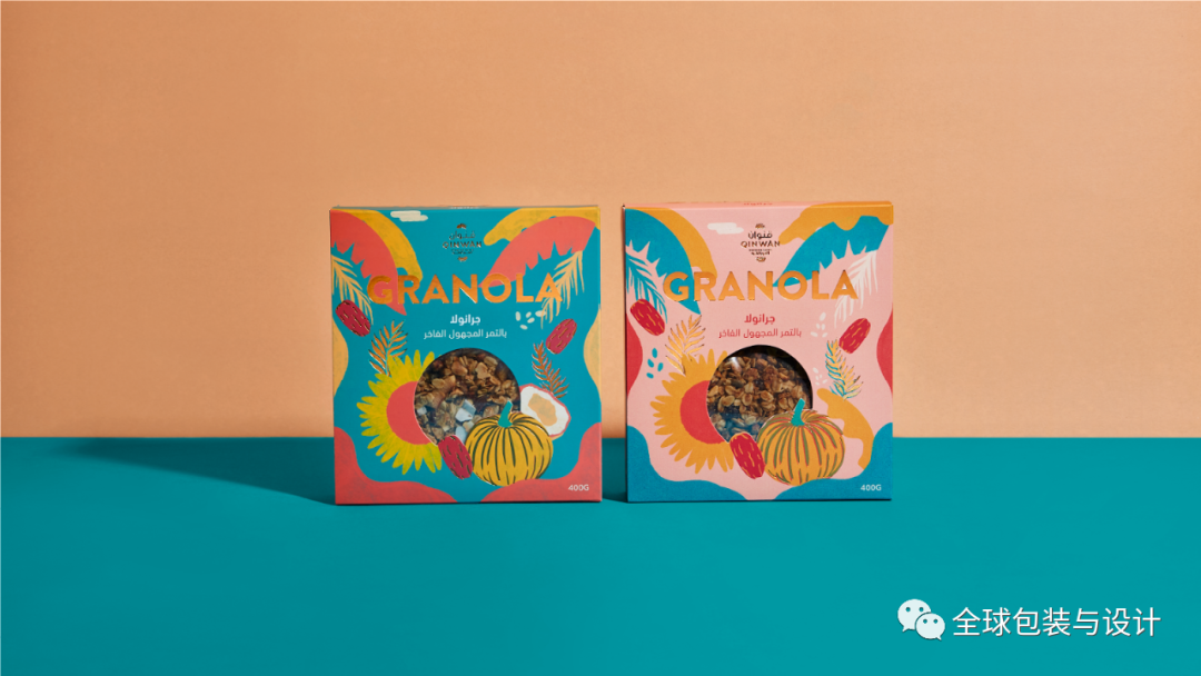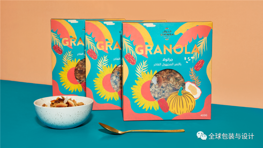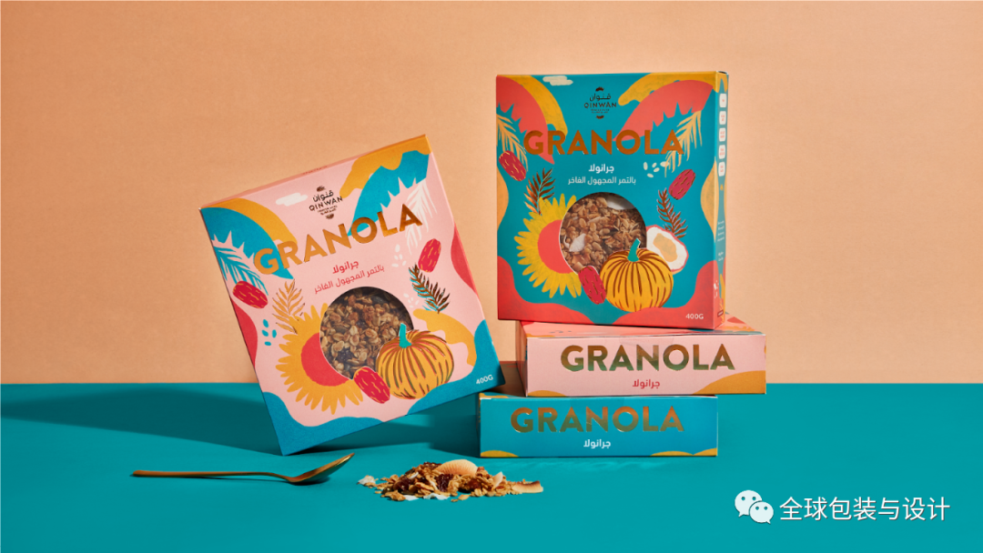品牌的靈感來自帶有現(xiàn)代氣息的前衛(wèi)審美。它意味著有趣和高級。一個(gè)充滿活力的調(diào)色板被用來根據(jù)口味的變化來吸引人們對包裝的注意。配以格蘭諾拉麥片成分的醒目插圖。