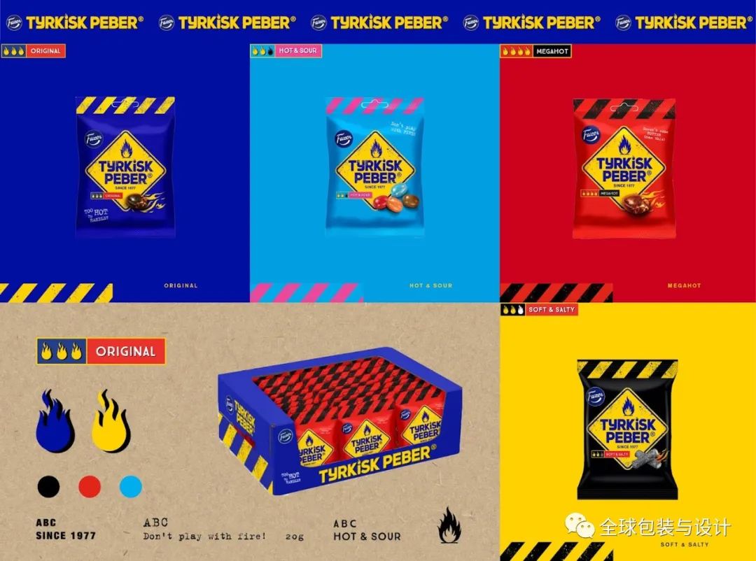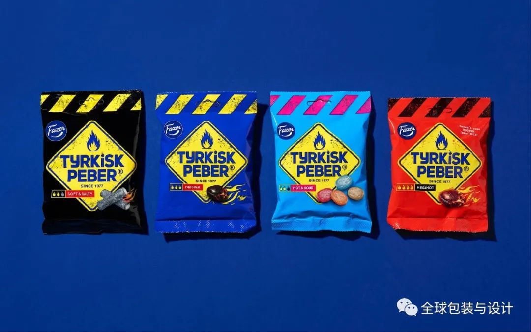 風(fēng)味變化中強烈的大膽色彩。巨大的突出標(biāo)志在包裝的中間,為貨架外觀。