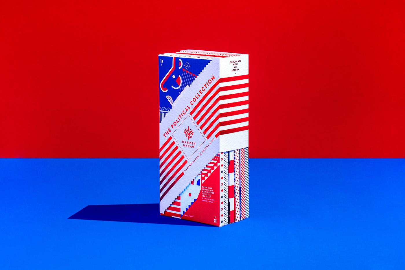 這款象征“非常美味、非??蛇x”的政治派對巧克力包裝展示了愛國的紅色、白色和藍色的設(shè)計,意在給政治世界帶來積極的影響,并照亮華盛頓特區(qū)不為人知的富有創(chuàng)造性的一面。