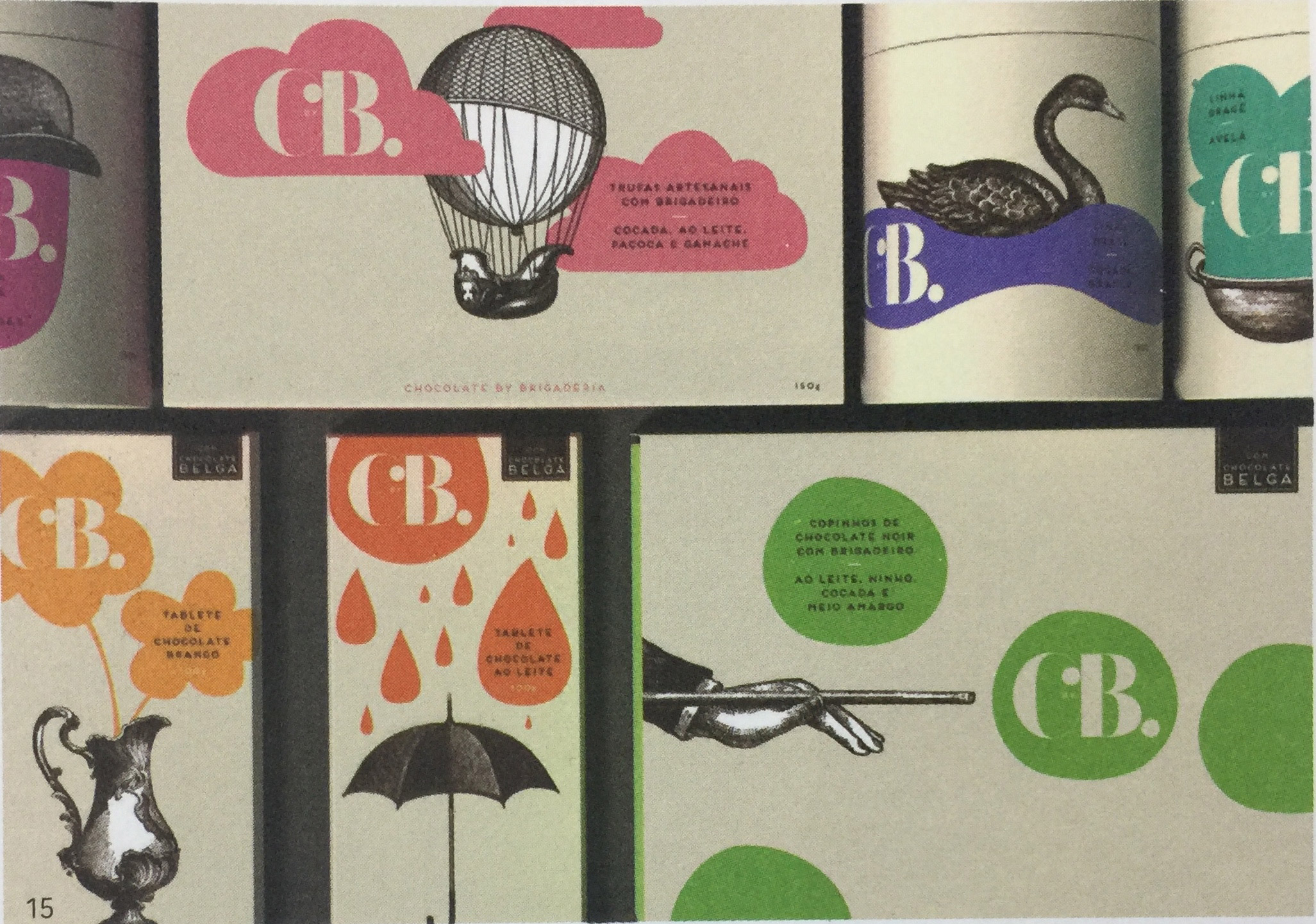C by B是由專(zhuān)門(mén)生產(chǎn)巧克力球的巴西糖果精品店Brigaderia生產(chǎn)的第一款巧克力系列產(chǎn)品,包裝設(shè)計(jì)通過(guò)結(jié)合黑白兩色復(fù)古風(fēng)格的版畫(huà)和簡(jiǎn)單、大膽的彩色插畫(huà)打造視覺(jué)形象,多種牽連感覺(jué)的視覺(jué)敘事手法匯聚一處,形成強(qiáng)烈的視覺(jué)對(duì)比。巧克力怎么樣呢?正如我們所看到的,包裝設(shè)計(jì)并未對(duì)巧克力進(jìn)行直觀(guān)的展現(xiàn)。那么這款巧克力產(chǎn)品的精髓在哪里呢?—令人身心愉悅!