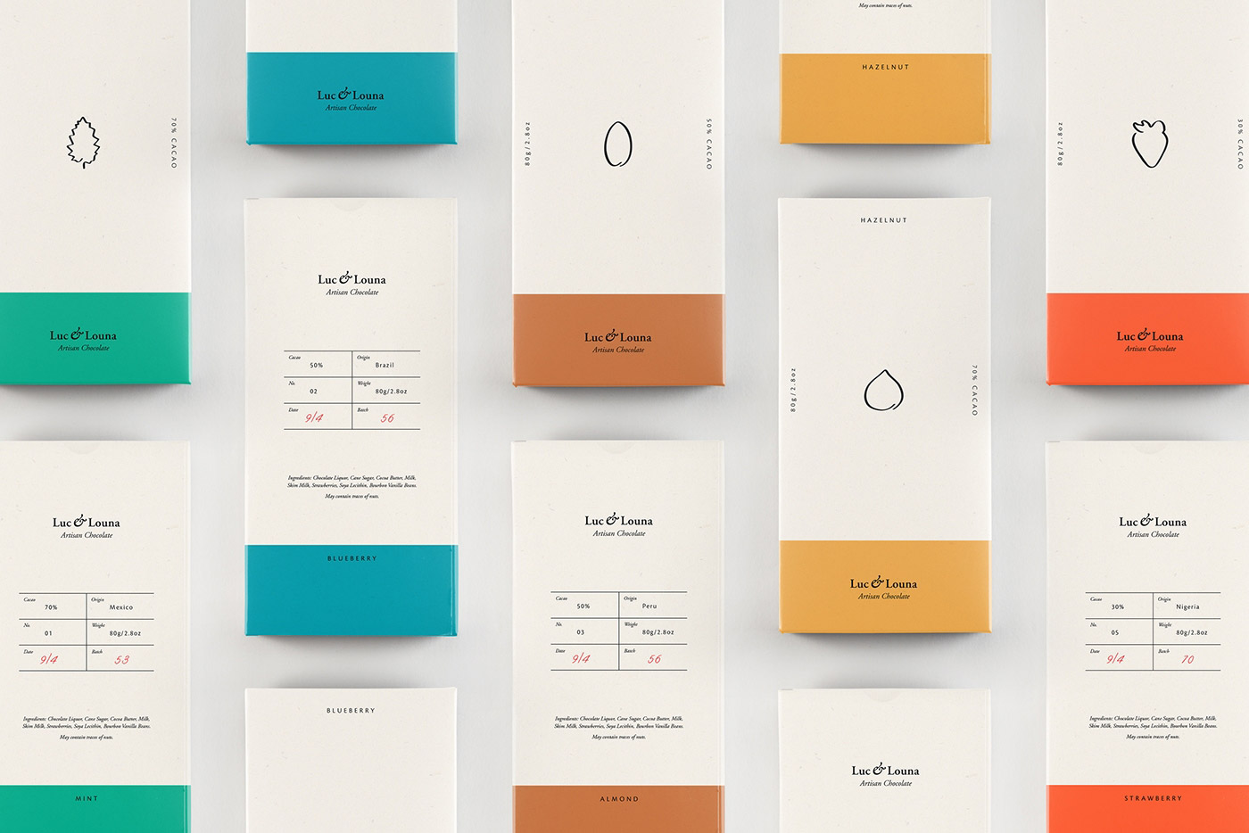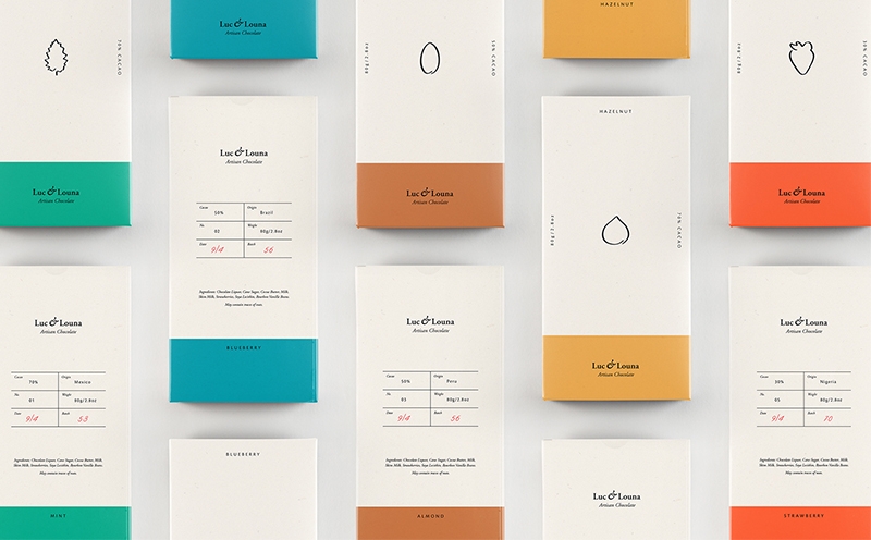 為概念奢侈巧克力品牌Luc &設(shè)計(jì)新的品牌身份與包裝。巧克力棒的選擇是為了展示不同的口味,每個(gè)巧克力棒都有一個(gè)最小的方法,把巧克力放在焦點(diǎn)上。