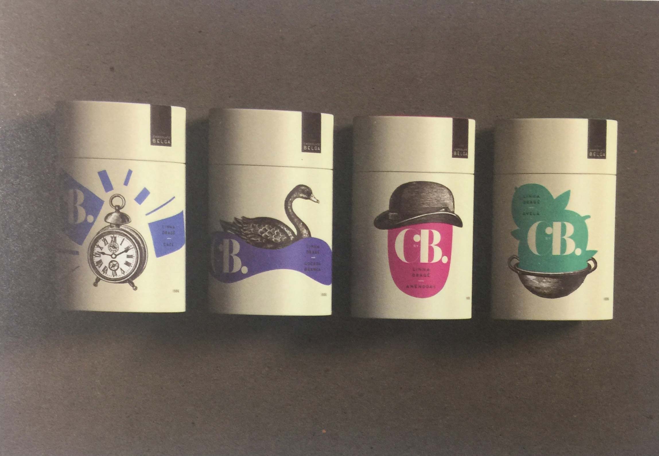 這一組包裝的設計結合了黑白兩色復古風格的版畫和簡單、大膽的彩色插畫。包裝插畫通過看起來似乎并不和諧的清晰和聯(lián)覺意象的敘事手法形成一種視覺游戲。包裝的目的在于展現(xiàn)品牌的特立獨行和童心未泯。各種不同口味或類型巧克力都有一款屬于自己的獨特插畫,這些清晰易懂的場景對巧克力可能喚起的各種情感進行了展現(xiàn)。