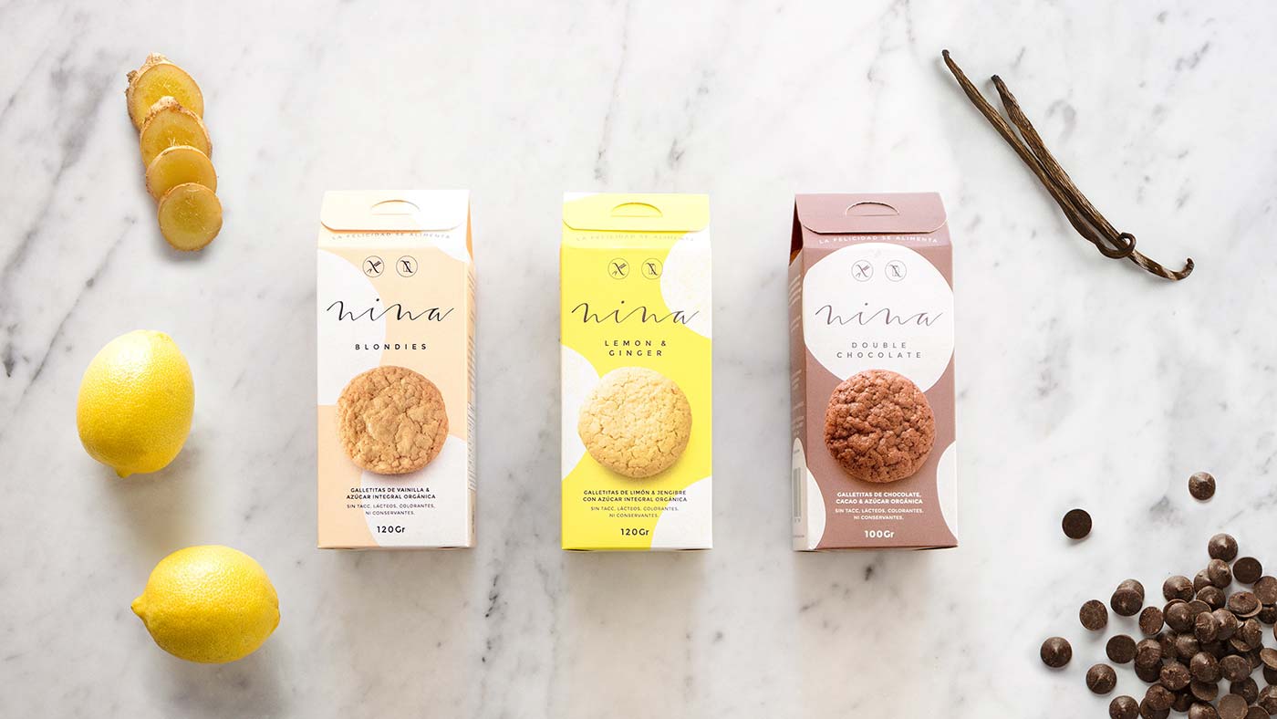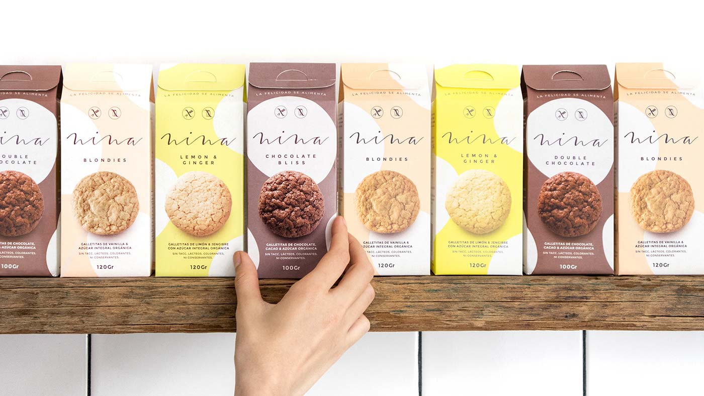 妮娜Vero Smith聯(lián)系我們來幫助她開發(fā)餅干食品的視覺識別,并為她新品牌-健康、美味的手工餅干設計包裝。我們做了一個非常微妙和聰明的包裝設計,試圖在我們的包裝設計中,把關心和愛放進每一盒餅干里。我們試圖傳達的信息是:在一些簡單的事情上,你可以找到快樂。