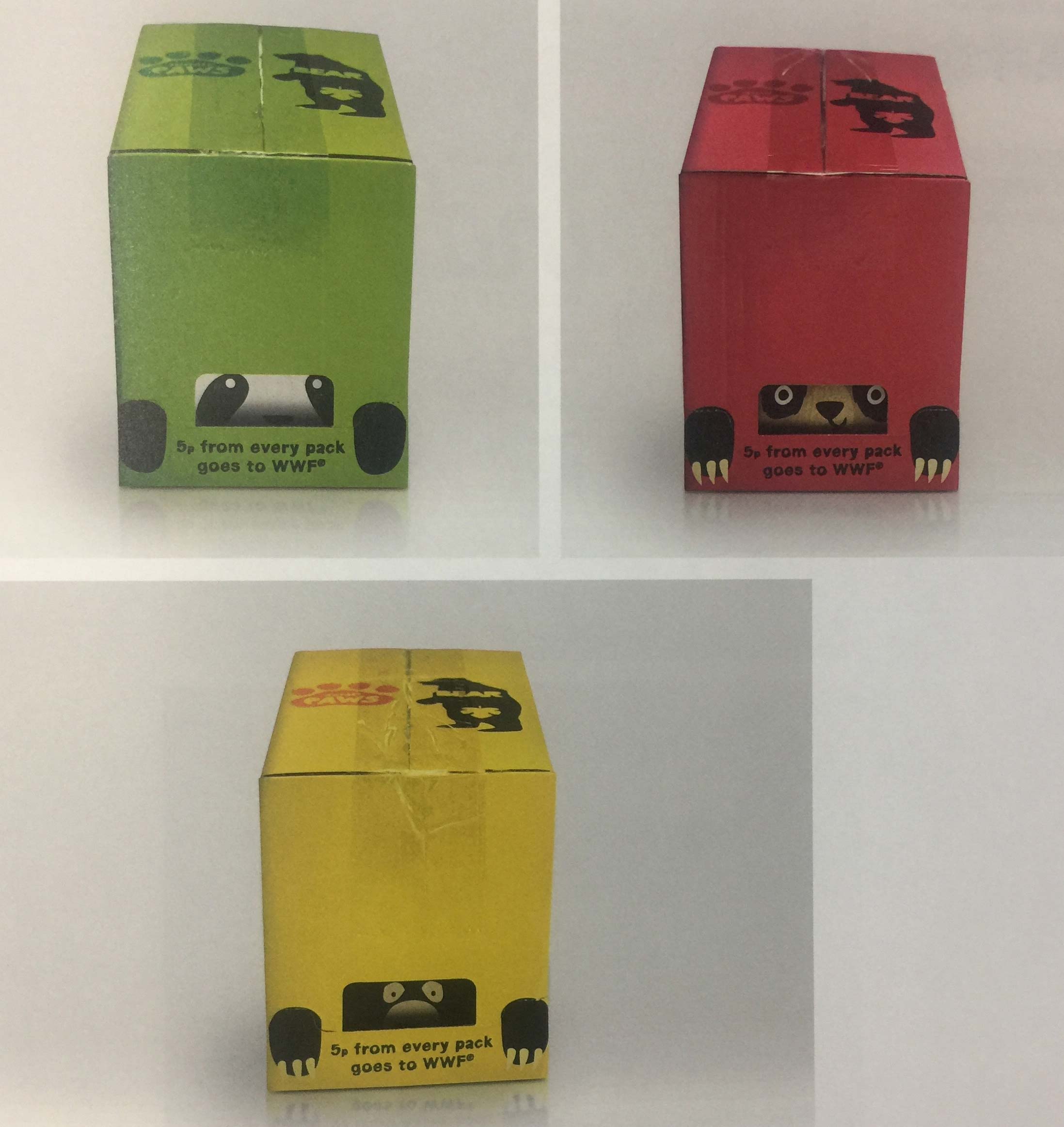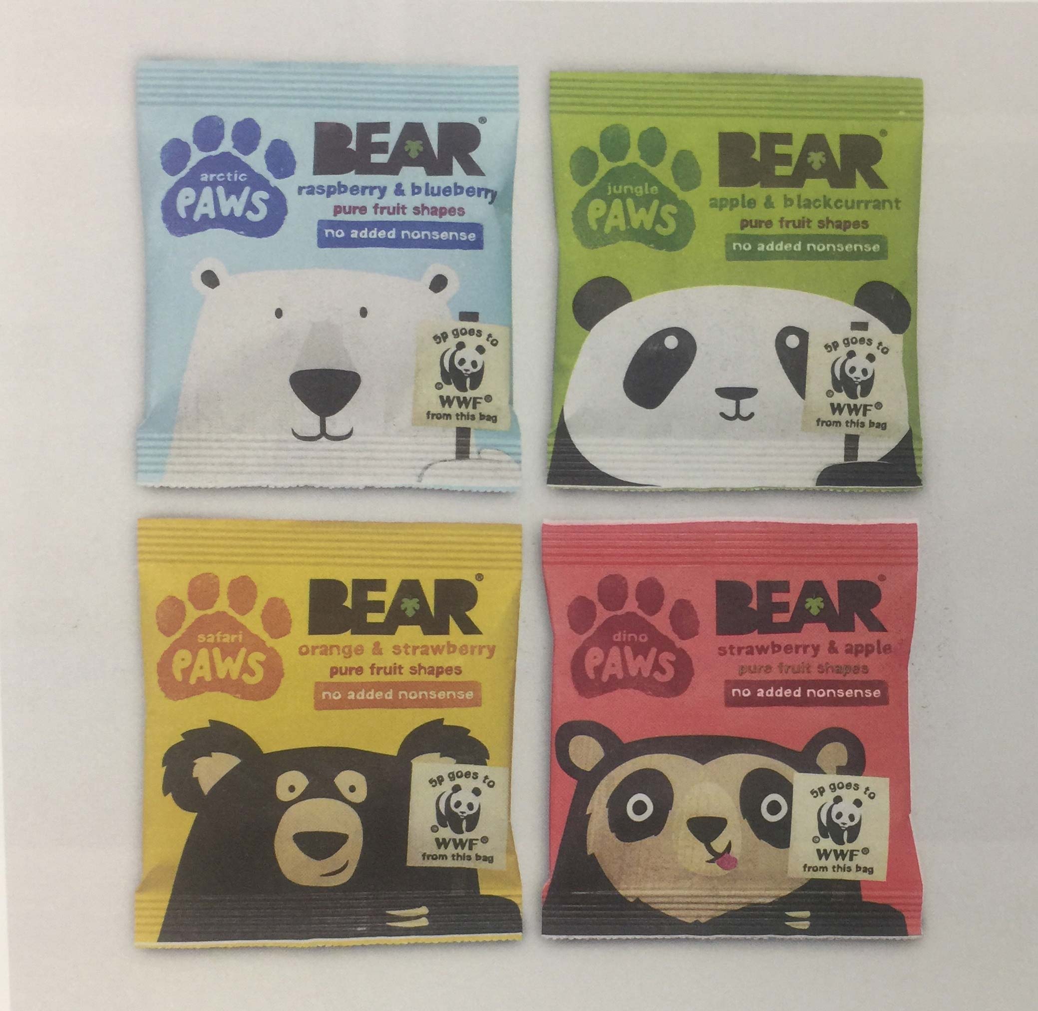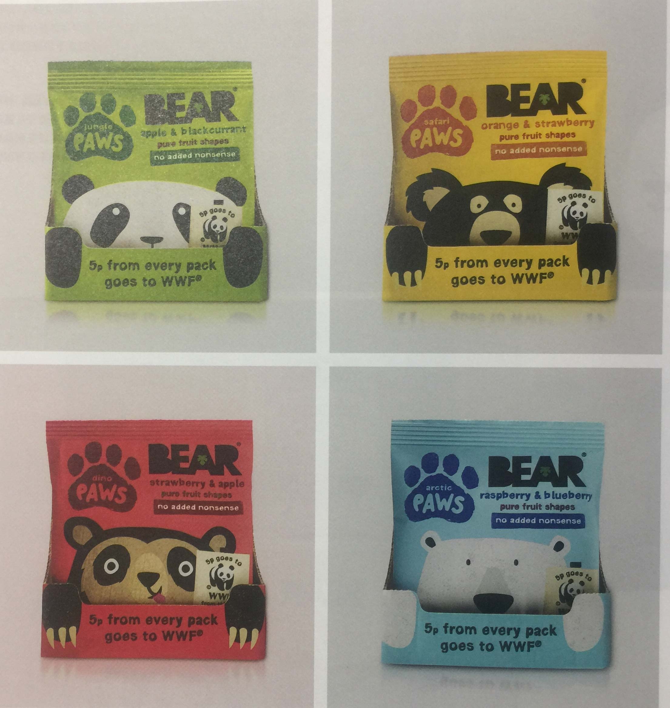 由B&B為水果品牌Bear打造的限量版爪印包裝是為籌集資金救助瀕危熊類而設(shè)計的。四款包裝上分別繪有四種不同的動物形象——眼鏡熊、北極熊、懶熊和熊貓——這四種動物均被列入世界自然基金會的漸危物種名錄。印制在包裝正面的一對熊爪印是包裝設(shè)計的一大亮點(diǎn),造成一種小熊窺視著盒子邊緣的錯覺。合上盒子后,從窗口露出的熊眼又好像在凝視著盒子外面的景象。