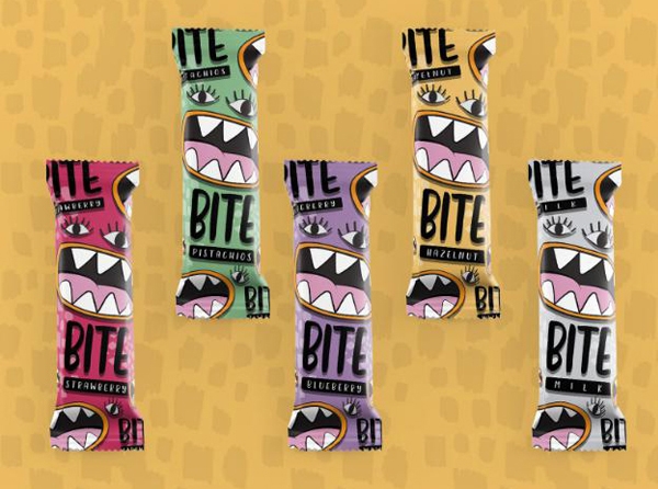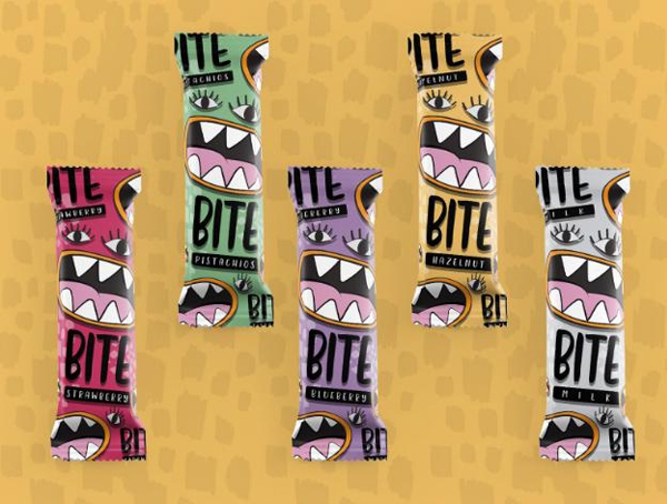 我們?cè)谏痰昀锟梢哉业胶芏嗖煌N類的巧克力,貨架上的巧克力琳瑯滿目的情況下,如何引起引起消費(fèi)者的注意是有難度的。今天介紹一系列名為BITE的巧克力棒。