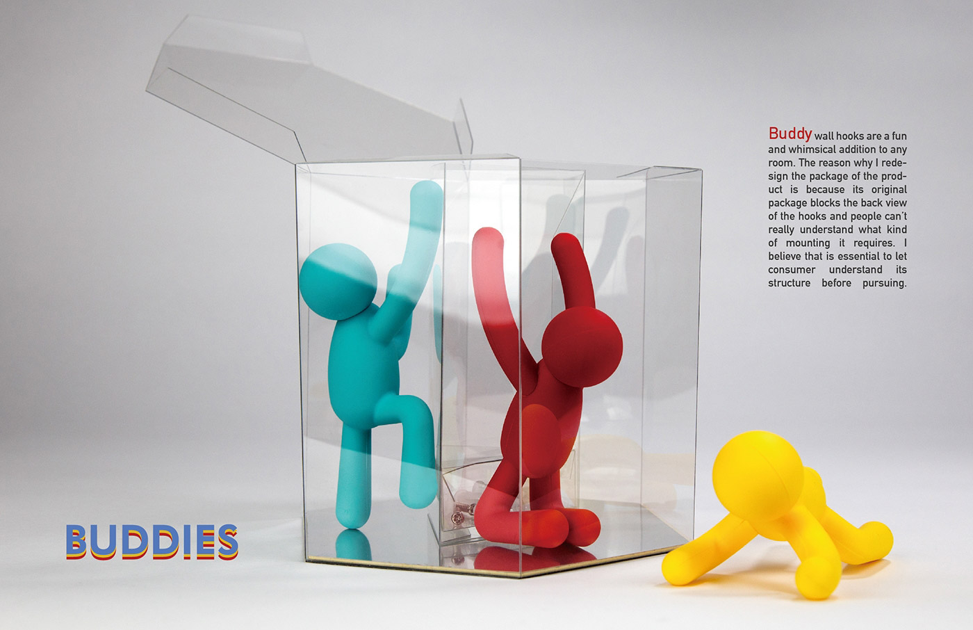 對任何房間來說,掛在墻上的鉤子都是一種有趣而又異想天開的東西。我之所以重新對產(chǎn)品的包裝進行設(shè)計,是因為它原來的包裝阻擋了鉤子和人的后視圖不能真正理解它需要什么類型的安裝。我認為,在購買之前,讓消費者了解其結(jié)構(gòu)欲用途是產(chǎn)品包裝設(shè)計至關(guān)重要的部分。