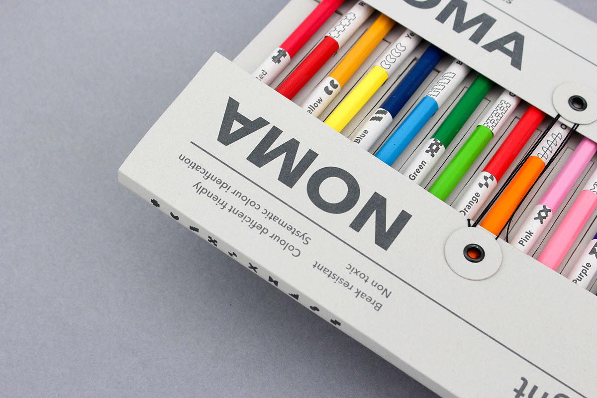 NOMA是一種針對彩色鉛筆的包裝設(shè)計。包裝使用一個符號編碼系統(tǒng)來表示每種顏色。整體圖形側(cè)重于創(chuàng)建一個平滑和不間斷的用戶體驗。獨特的結(jié)構(gòu)包裝,讓用戶可以把彩色鉛筆分成深色和淺色調(diào)。