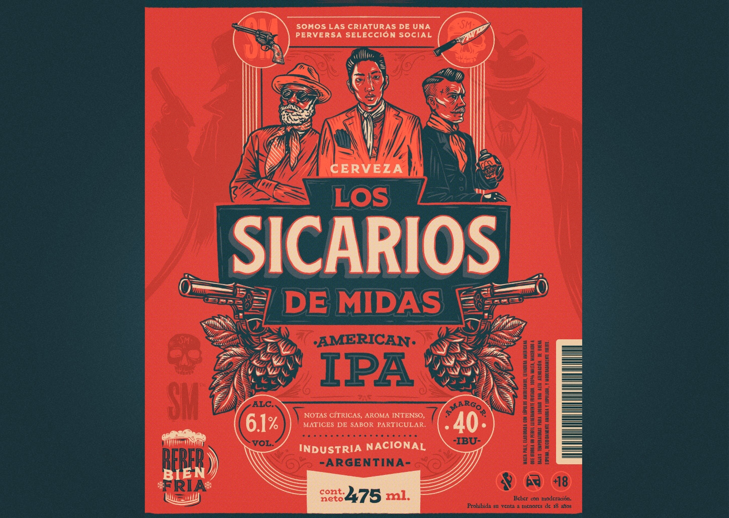 “ Los Sicarios de Midas”啤酒是美國IPA風格,帶有柑橘香,強烈的香氣和特殊風味的細微差別。設(shè)計是完全手工制作的復古風格。受到杰克·倫敦(Jack London)的短篇小說《麥達斯的奴才》的啟發(fā),在那里他詳細闡述了無政府主義者社會的殘酷機制。