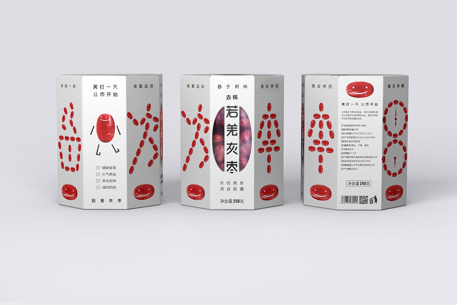 為此,我們在包裝上采用了極簡的視覺和精致的文字排版,以富有觸感的白紙襯托紅棗的產(chǎn)品魅力,營造原味,安全的產(chǎn)品氣息。