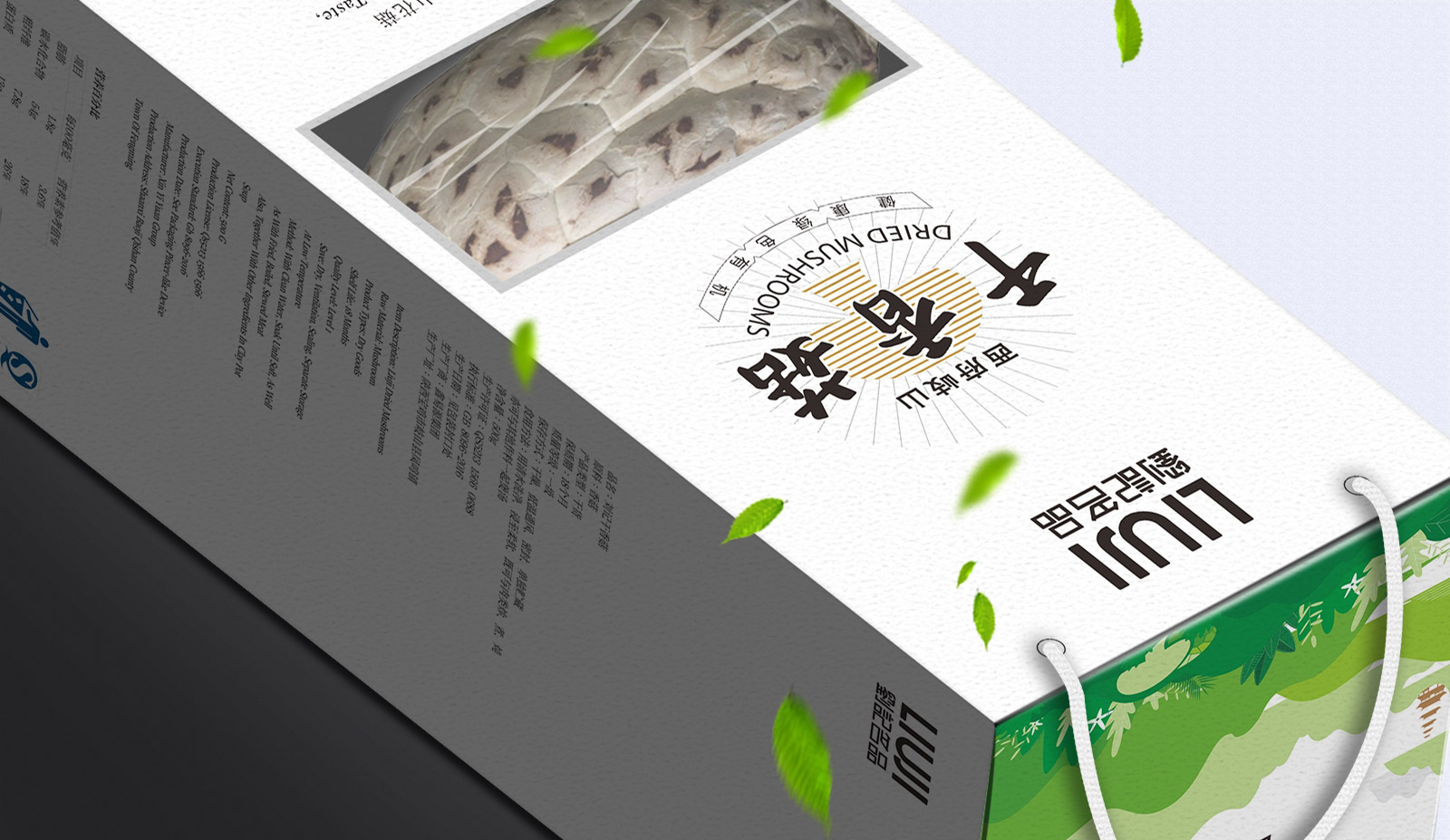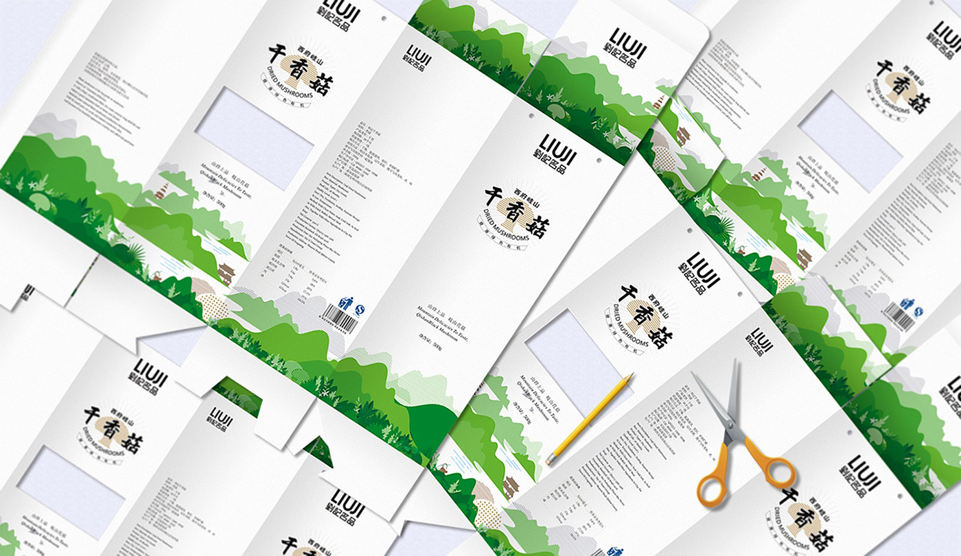 為了給消費者傳達產(chǎn)品的純天然和自然健康無添加,設計主要突出干香菇生長環(huán)境的特征,提取相關(guān)圖形元素間接表現(xiàn)產(chǎn)品屬性,以一種清新方式對干香菇生長環(huán)境的景象進行展現(xiàn),使包裝看起來與眾不同,有效的提高產(chǎn)品的辨識度。