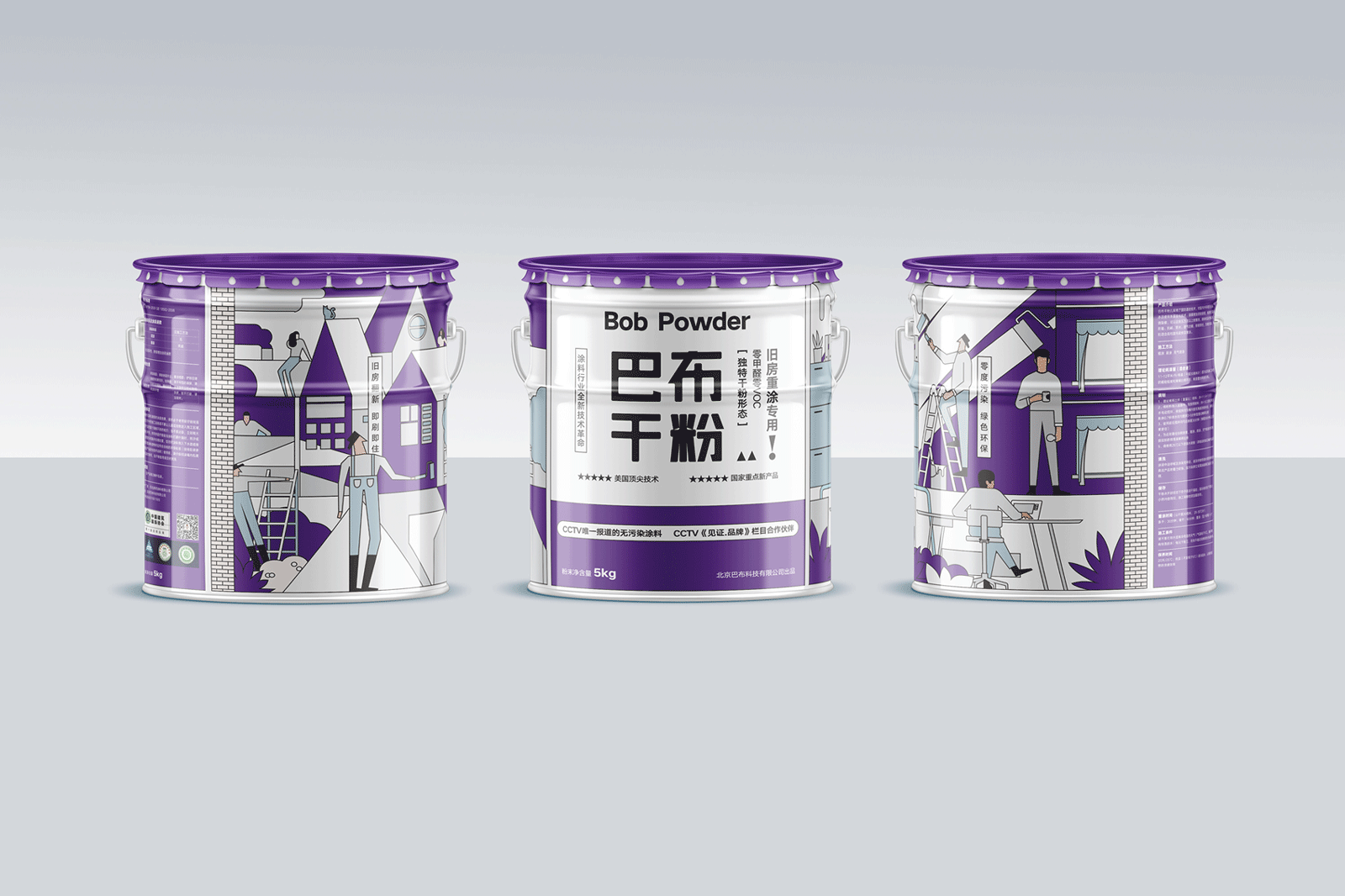 干粉涂料高端款包裝設(shè)計(jì)-紫色桶裝組合