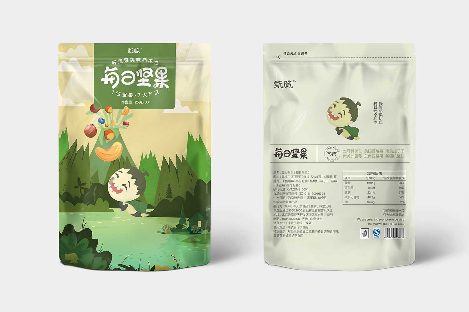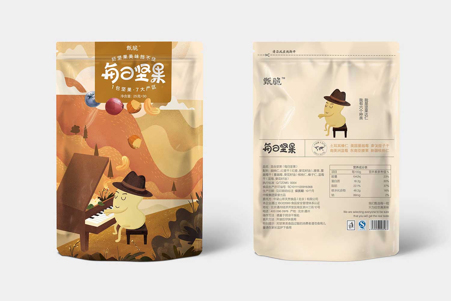 甄選每一粒 追求高品質(zhì)選料地.為追求健康天然的食品人群,提供真正放心、安心的好食品形象.2017年,甄脆食品選擇了厚啟,合作開發(fā)堅果系列產(chǎn)品包裝設計,希望打破原有設計的傳統(tǒng)思維,能幫其在男女性消費群體中梳理清晰化的產(chǎn)品包裝風格,從而促進銷售。