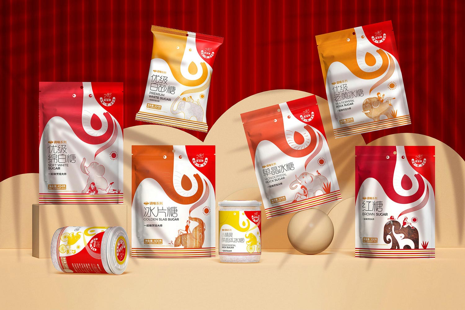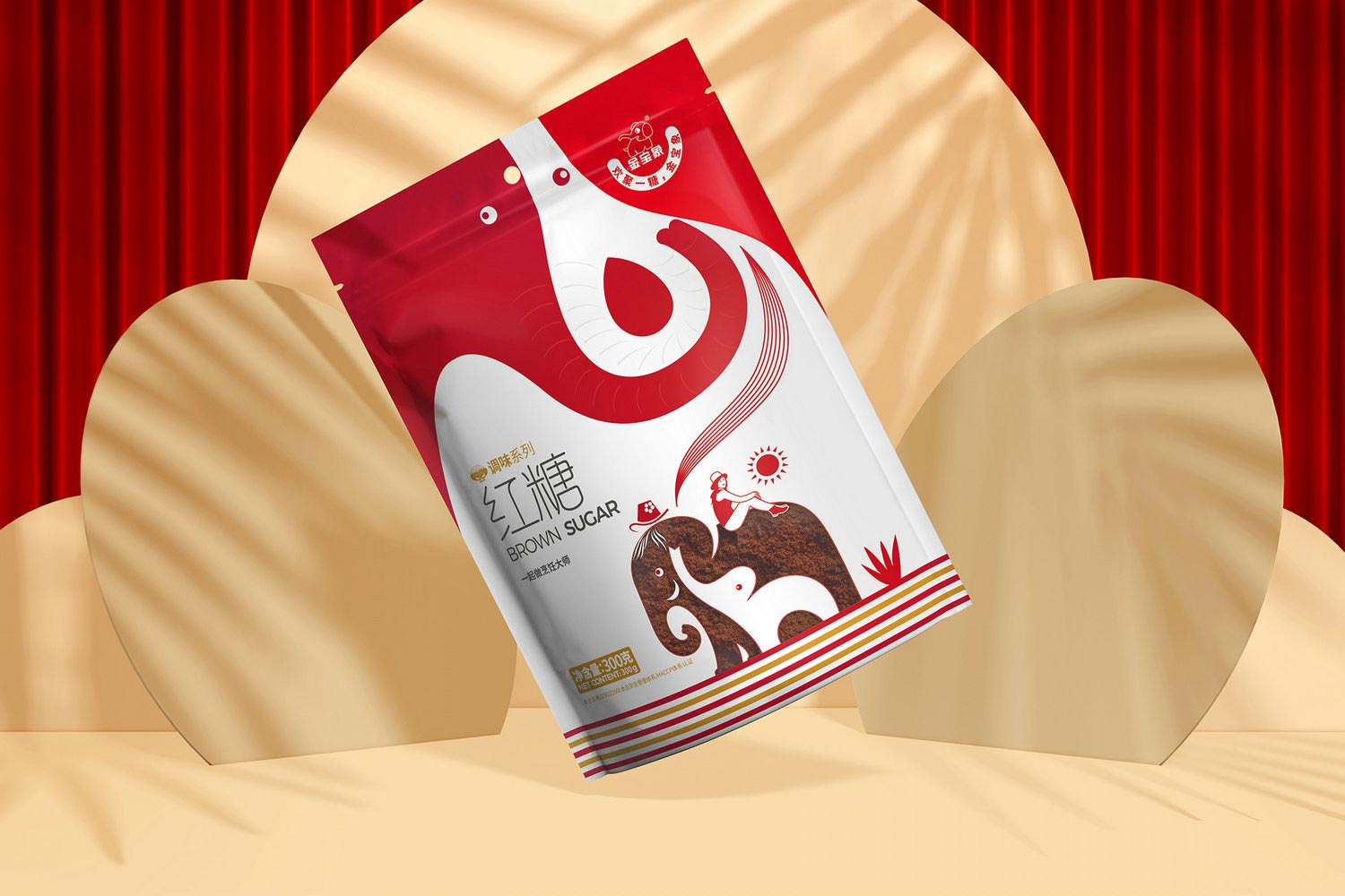 包裝視覺一體化 :抓住印有大象圖案的糖料。
