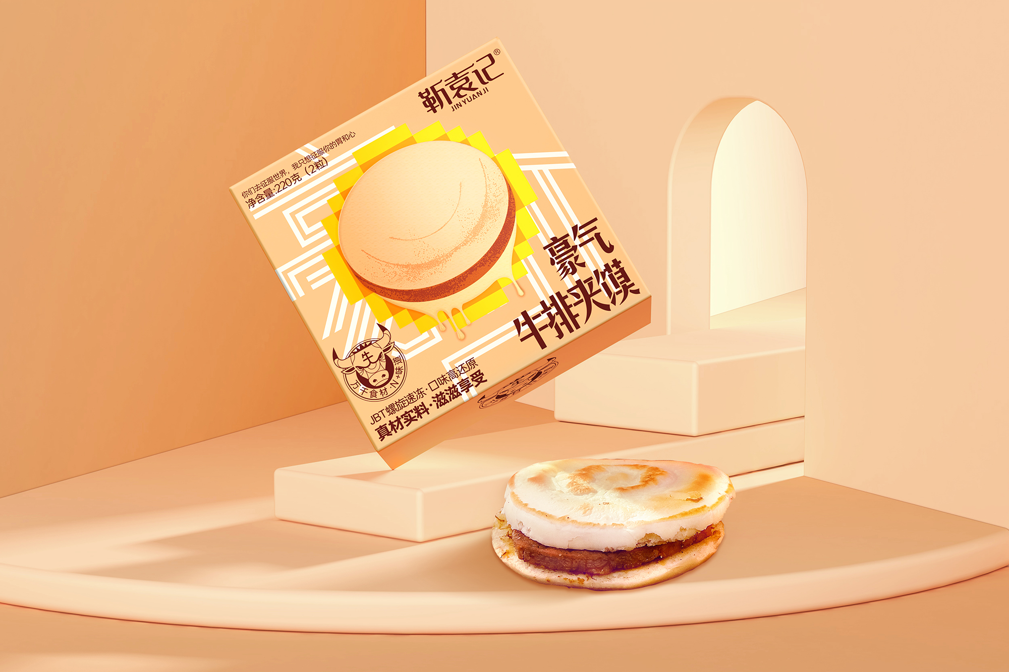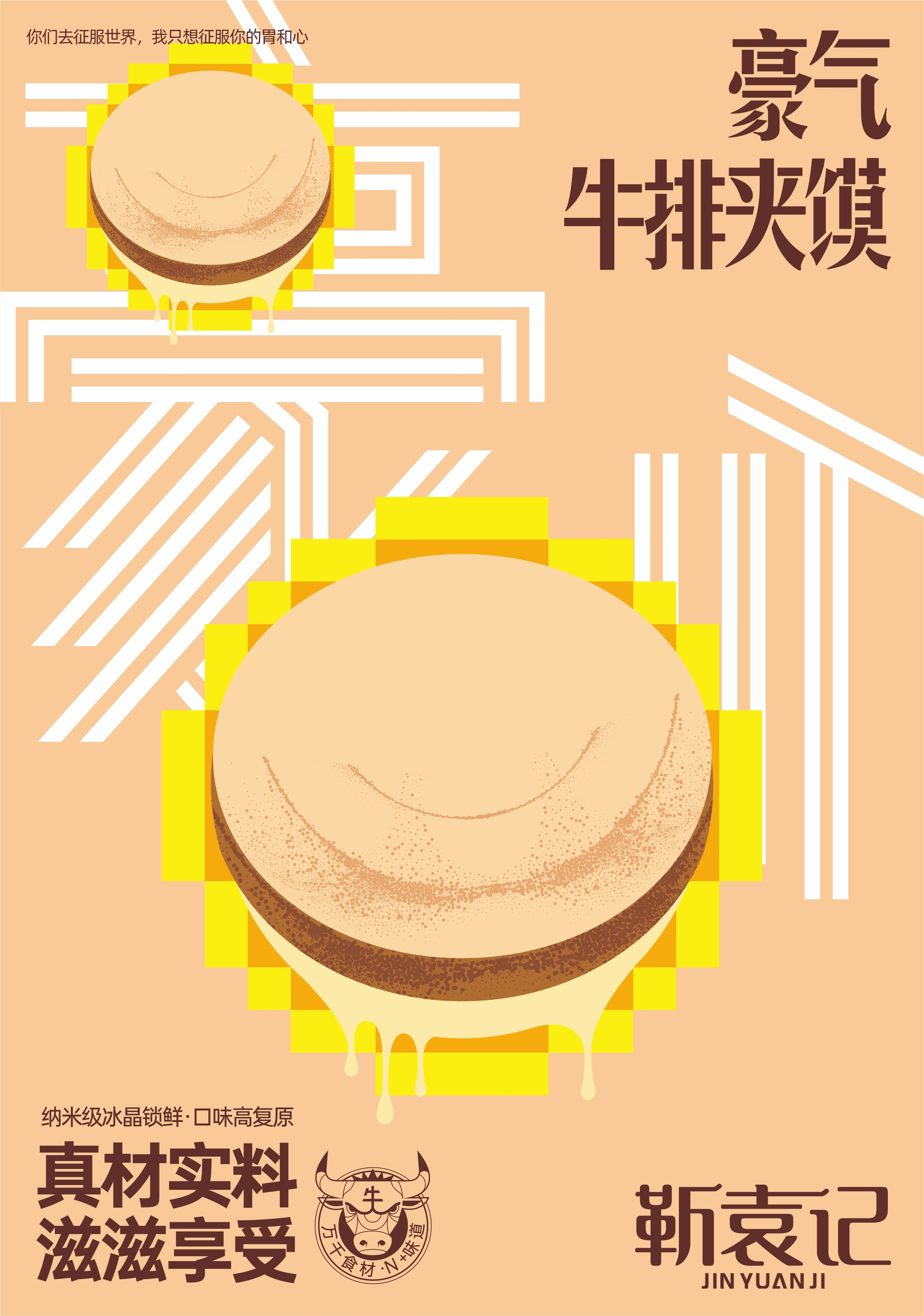 豪氣牛排夾饃作為靳袁記肉夾饃新品--新潮款的主打產(chǎn)品,面向的是更年輕和新潮的主流消費(fèi)群體。也承載著向年輕消費(fèi)者傳承民族食品-肉夾饃的使命