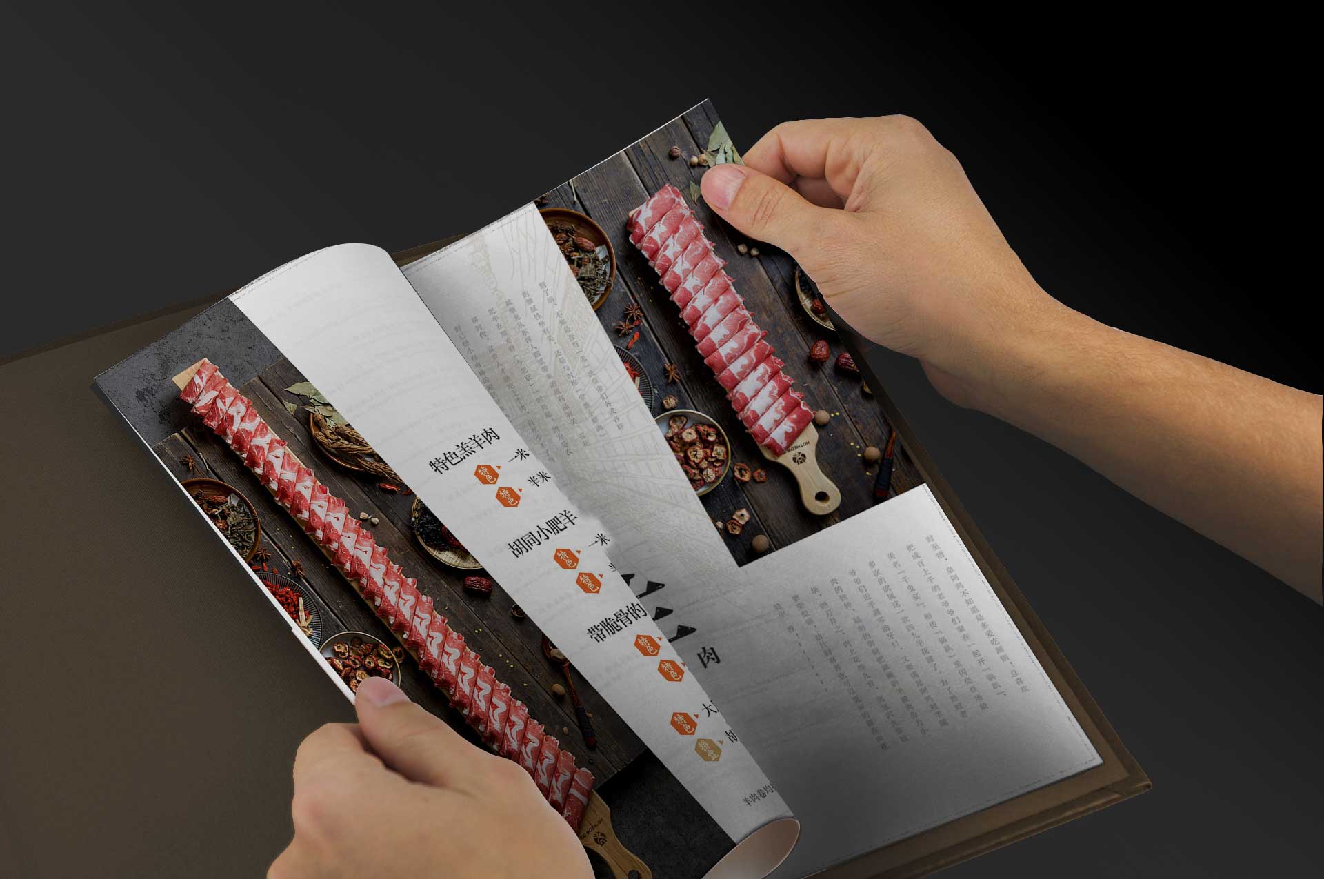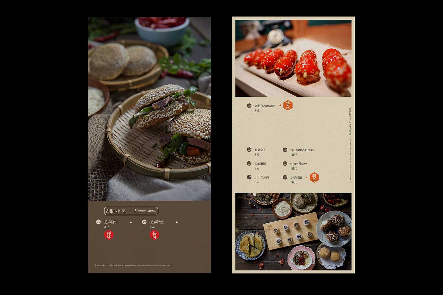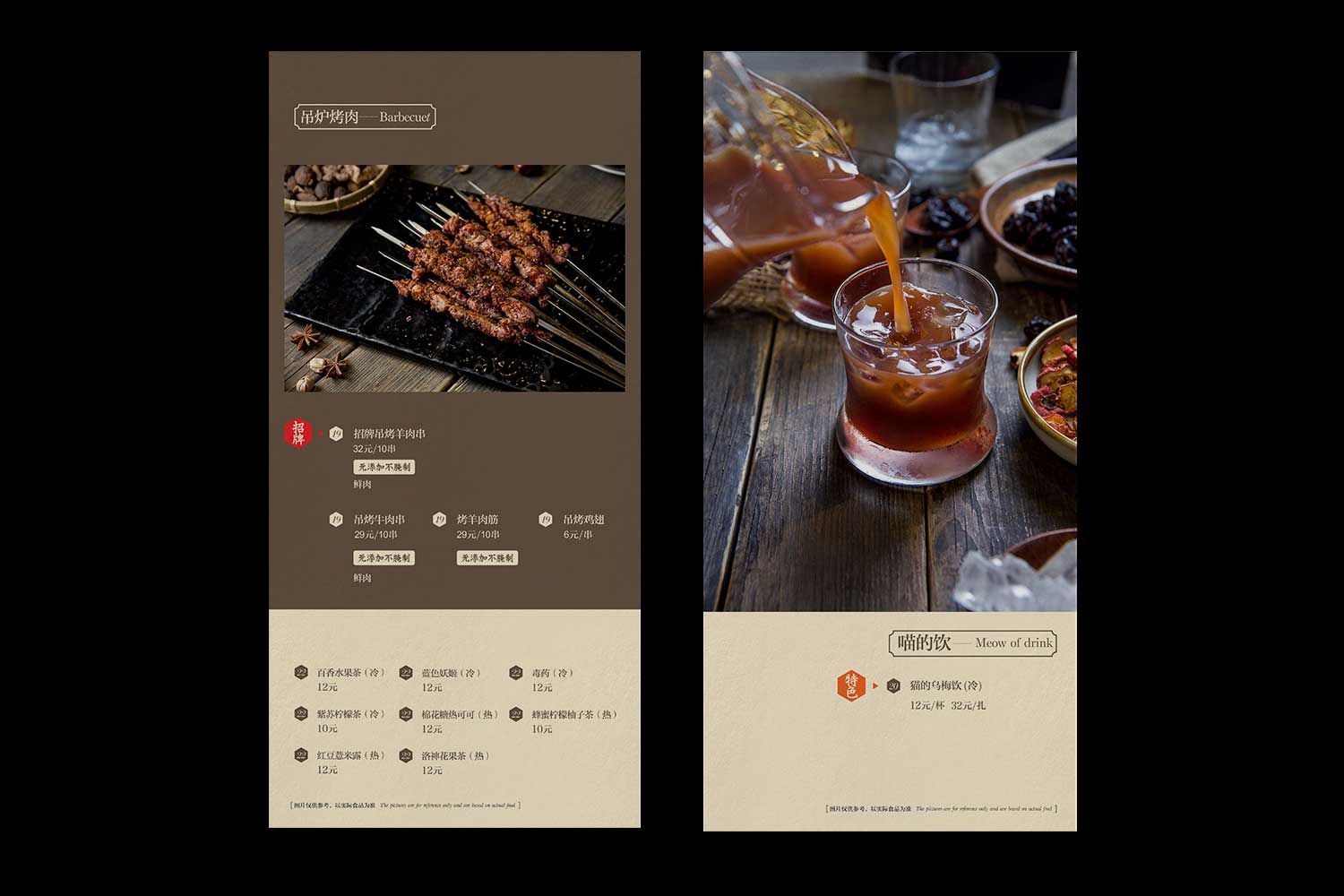 以其VI色深褐色為主調(diào),突出本店特色產(chǎn)品一米羊羔肉和胡同飲品,體現(xiàn)出復(fù)古、淡淡的懷舊、北京胡同風(fēng)格。