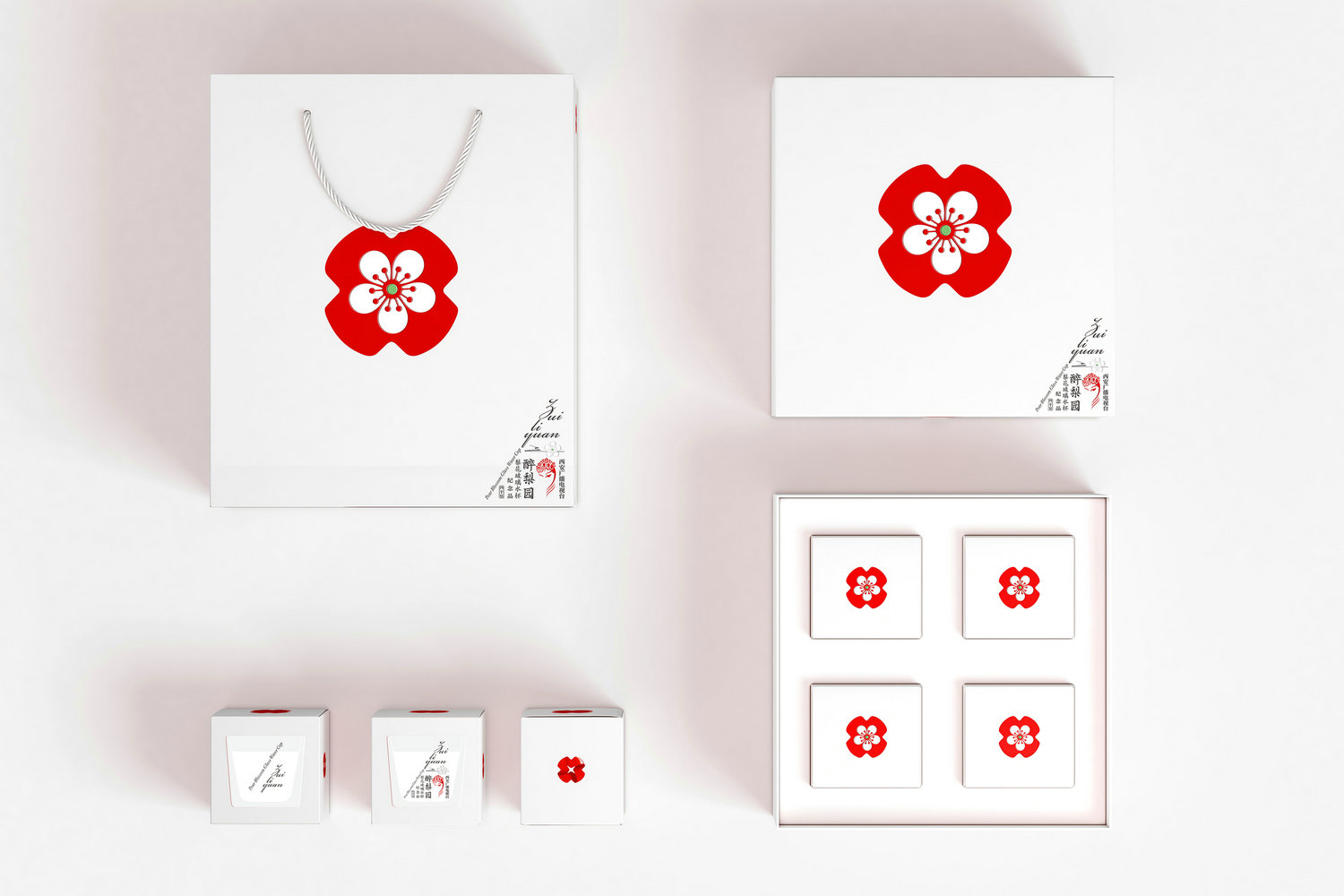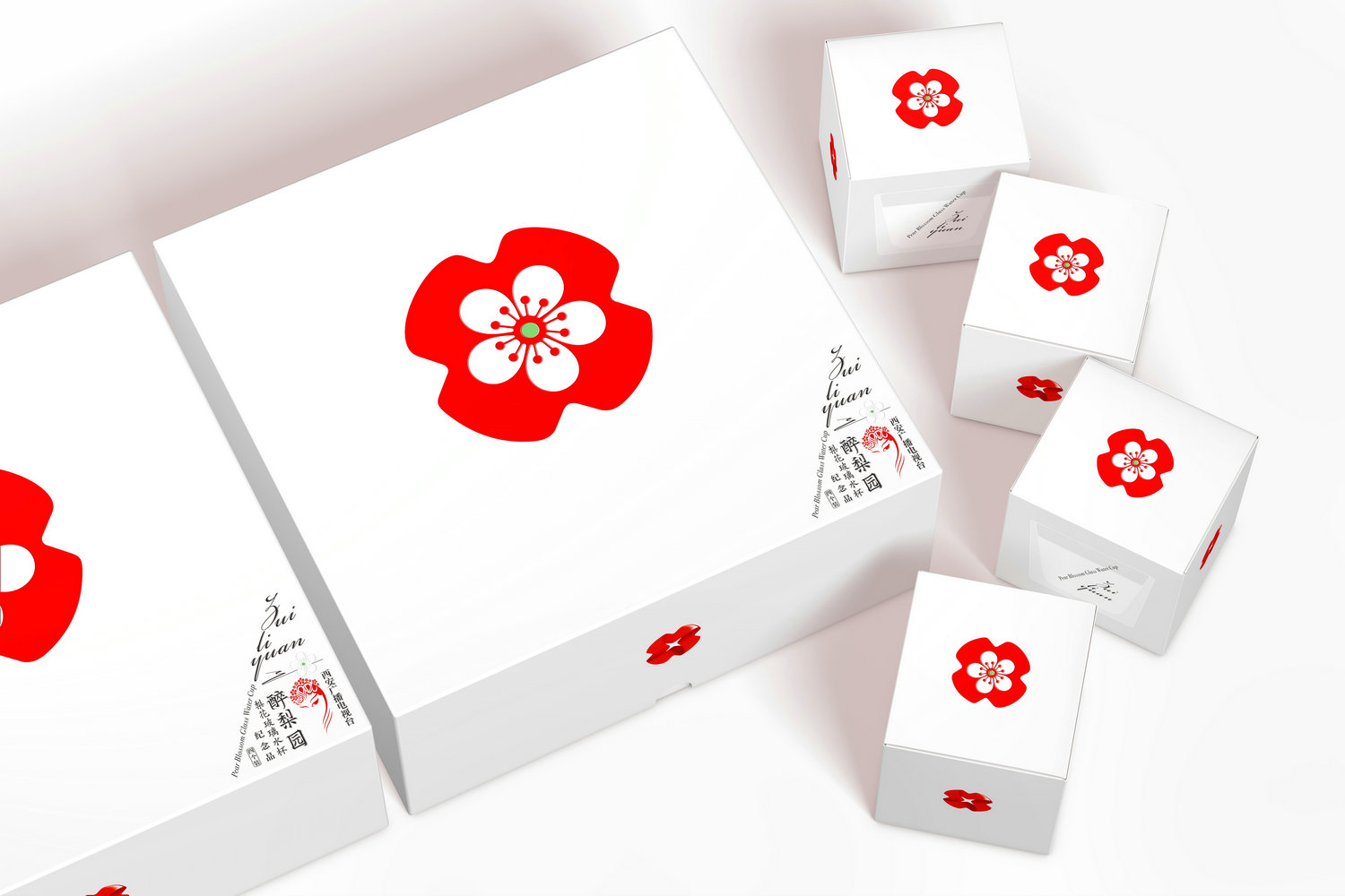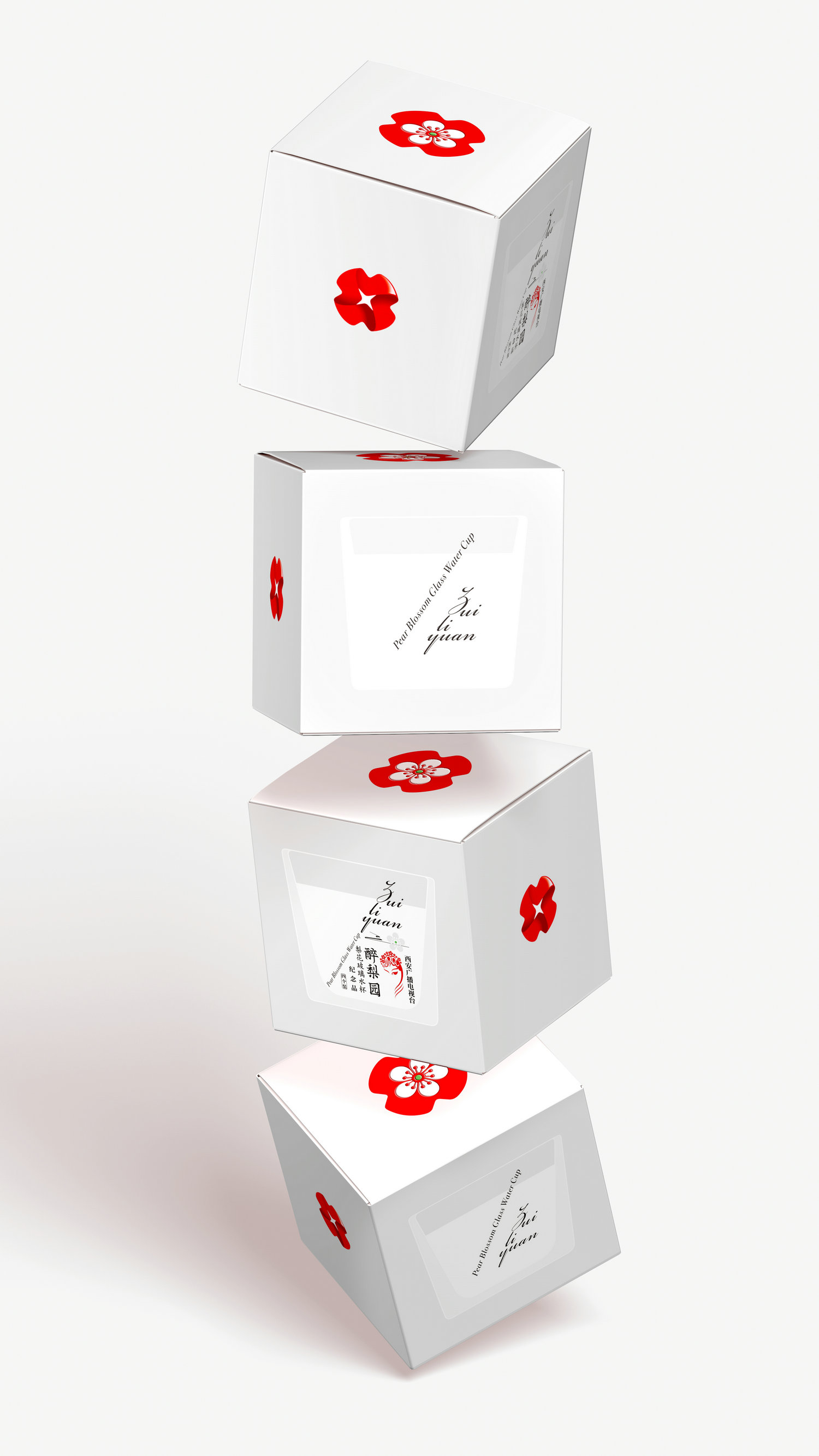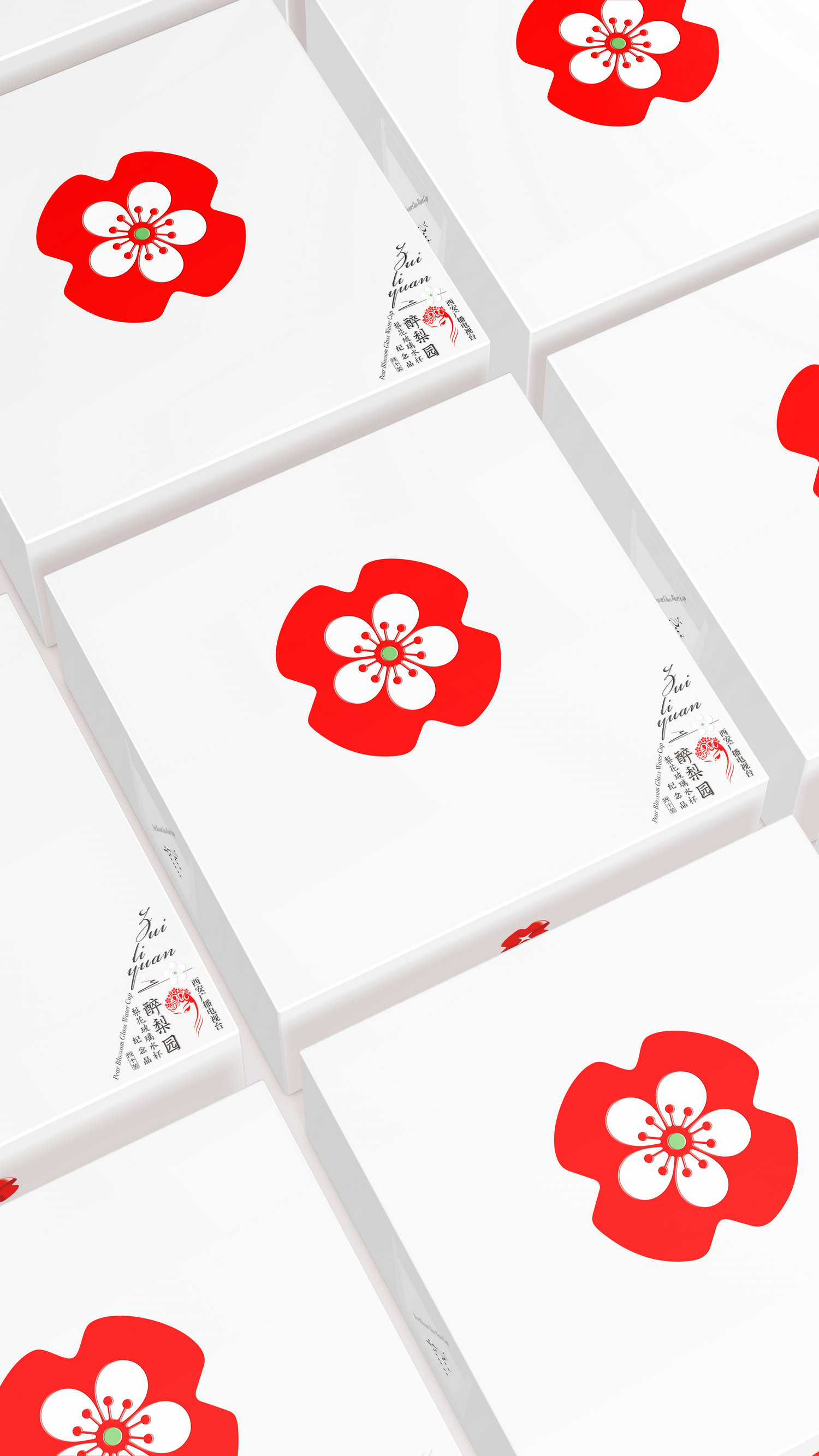 西廣電的-石榴花標識具有特殊的魅力,能在多元化而復雜的環(huán)境媒介中被清晰識別,我們將其作為核心視覺符號進行設(shè)計,扁平化的紅色石榴花圖形中結(jié)合梨花的元素,從而創(chuàng)造了一個寄生于西廣電-石榴花標識的新圖形,這種緊密的關(guān)聯(lián)性激活了無窮的圖形力量。我們將石榴花標識植入到玻璃杯底中,這種工藝讓玻璃光暈中映射出魅力的石榴紅,優(yōu)雅奪目,并持久的綻放光彩。整個包裝采用白色環(huán)保紙張設(shè)計,簡潔優(yōu)雅,圖形與文字打破常規(guī)的排列,讓包裝同樣展示出新奇優(yōu)雅的氣質(zhì),而這正是紀念品開發(fā)所要實現(xiàn)的目的,即以平靜和優(yōu)雅去觸動每一位接觸它的觀者,直達內(nèi)心,傳遞西廣電的品牌情感。