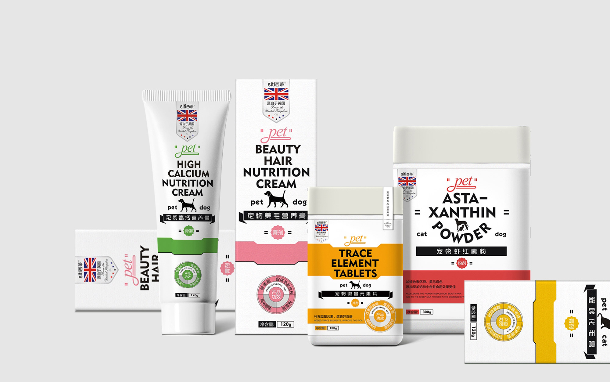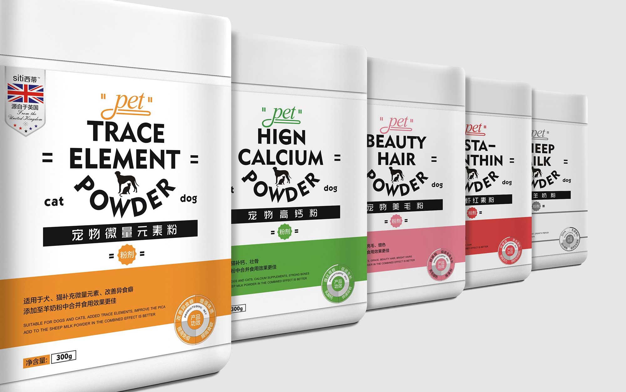 西蔕寵物食品-寵物微量元素粉、寵物高鈣粉、寵物美毛粉、寵物蝦紅素粉、寵物羊奶粉包裝設(shè)計(jì)