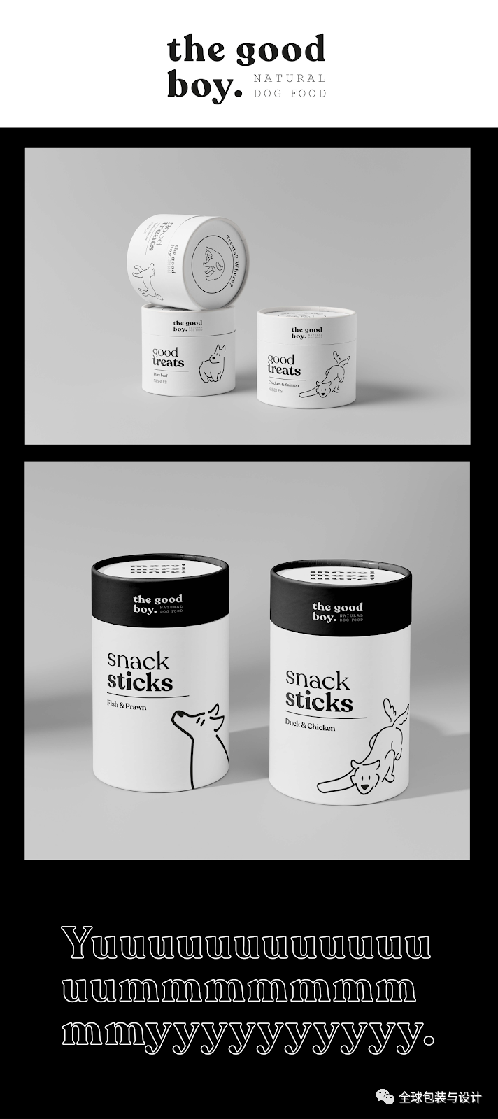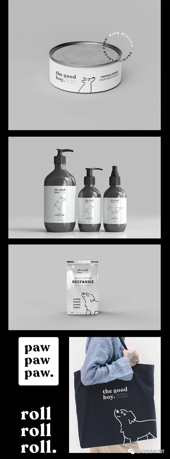 黑與白并不一定是平淡無奇的,通過配對(duì)良好的排版,可愛的小狗插圖,以及一系列圓滑的包裝。證明黑與白,是該領(lǐng)域的視覺創(chuàng)新。