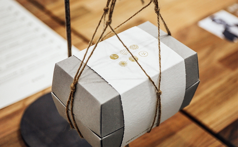 產(chǎn)品以記憶中長(zhǎng)輩做的家常菜味道為基礎(chǔ),結(jié)合創(chuàng)意的搭配元素以及料理手法,再用味道創(chuàng)造節(jié)奏感,重新詮釋我們心中的老故事。我們的包裝設(shè)計(jì)采用單色紙盒包裝,更突出便當(dāng)本身的色澤,造型就像老人家的箱子,蘊(yùn)藏著故事。打開后是一個(gè)具有穩(wěn)固作用的結(jié)構(gòu),讓便當(dāng)在途中更加安全。包裝的標(biāo)簽上有六個(gè)小圖標(biāo),分別代表著六種口味的飯團(tuán),腐乳辣筍飯球、珍珠丸子、沖菜香腸飯球、酥炸肉餡地瓜球、紅燒肉飯球、桂花團(tuán)子,使用燙金工藝,使包裝更精巧。