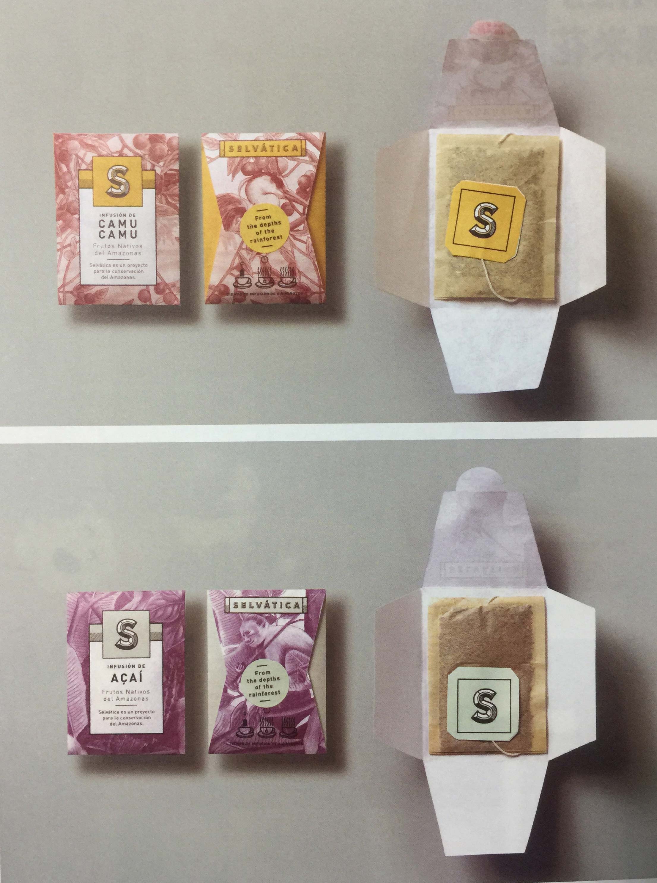 這是一個(gè)果茶品牌,果茶的制作原料產(chǎn)自哥倫比亞熱帶雨林,因此,該品牌也成為城市居民了解亞馬孫熱帶雨林的一扇窗。插畫對(duì)水果的來(lái)源進(jìn)行了完美的展現(xiàn)。插畫師希望以此向人們介紹巴西莓、卡姆果、大花可可果和思帝果的生長(zhǎng)環(huán)境,哪些動(dòng)物會(huì)食用這些果子,當(dāng)?shù)鼐用裼质侨绾尾烧@些果子的。這些手繪插畫將想法變成現(xiàn)實(shí),改造品牌,使果茶茶包的包裝看起來(lái)更加獨(dú)特、更具異域風(fēng)情,同時(shí)還有助于增加果茶的銷量。
