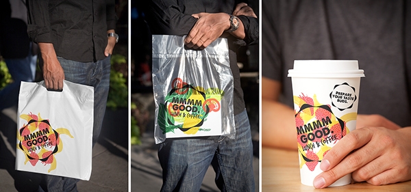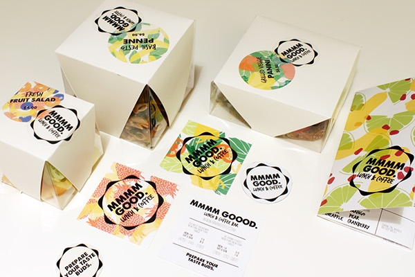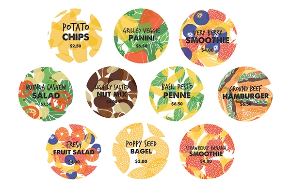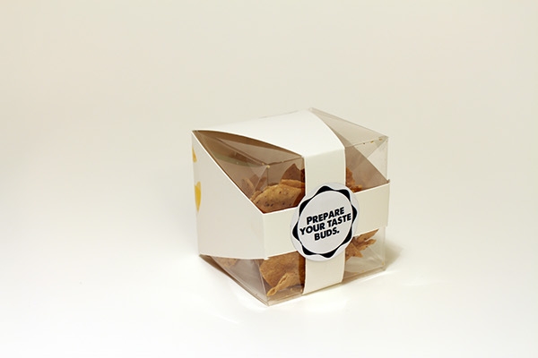 每個(gè)菜單項(xiàng)都有一個(gè)個(gè)性化的標(biāo)簽,上面有它的關(guān)鍵成分。根據(jù)項(xiàng)目的不同,它將被包裝在一個(gè)標(biāo)準(zhǔn)的袋子里,瓶子,小的,中,或大的盒子,然后是個(gè)性化的三種貼紙:食品標(biāo)簽,cafe標(biāo)志貼紙和一個(gè)“準(zhǔn)備你的味蕾”貼紙(也用來關(guān)閉整個(gè)盒子結(jié)構(gòu))。