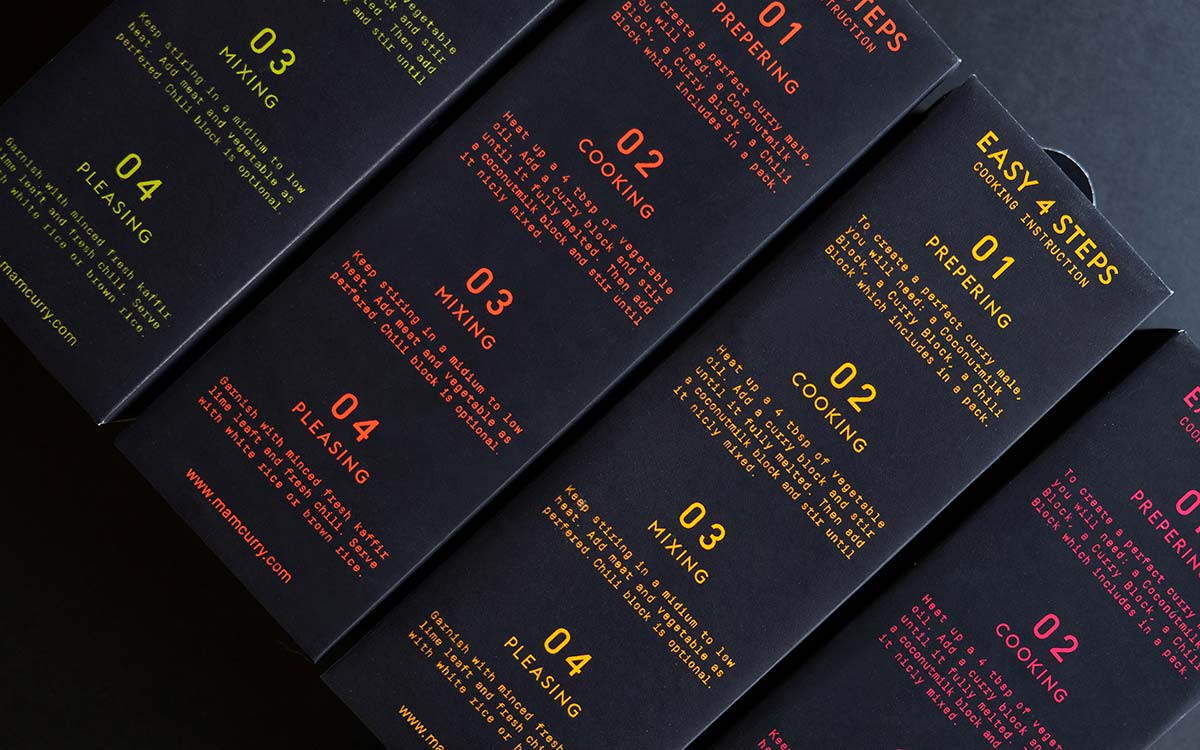 MàM Thai咖喱是一條新的產(chǎn)品線,它把制作泰國咖喱的所有主要原料打包成一個包裝,其中包括泰國咖喱醬、椰奶和泰國香料。這個產(chǎn)品的獨特之處在于,與市場上其他泰國咖喱產(chǎn)品相比,使用起來更方便。泰國咖喱塊是可調(diào)的香料,通過使用泰國香料立方體。通常,咖喱所需的所有配料都要進行大量的包裝。