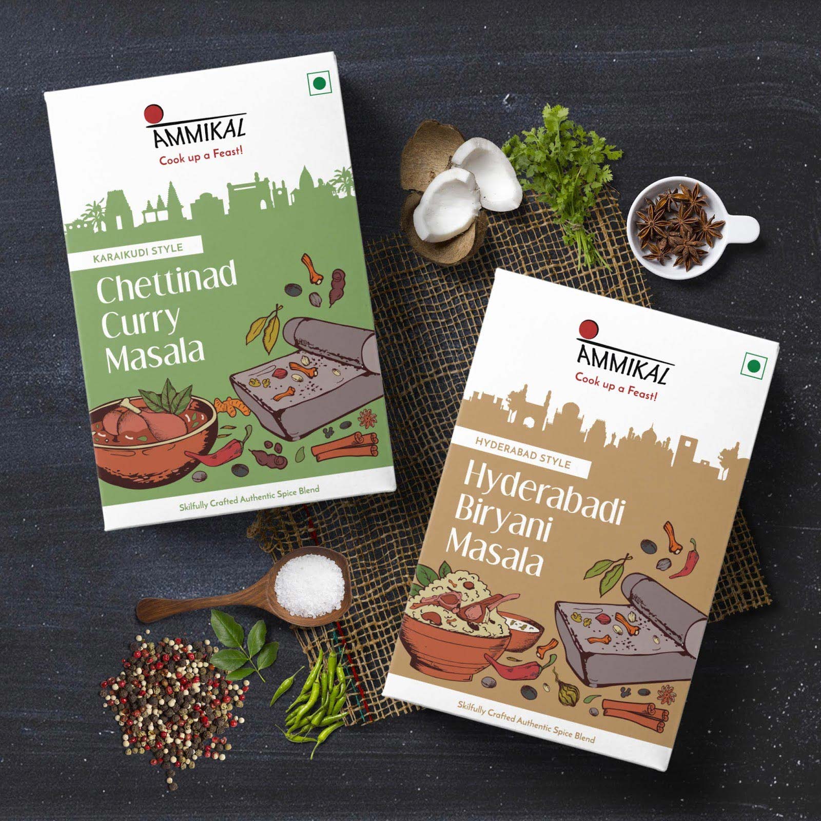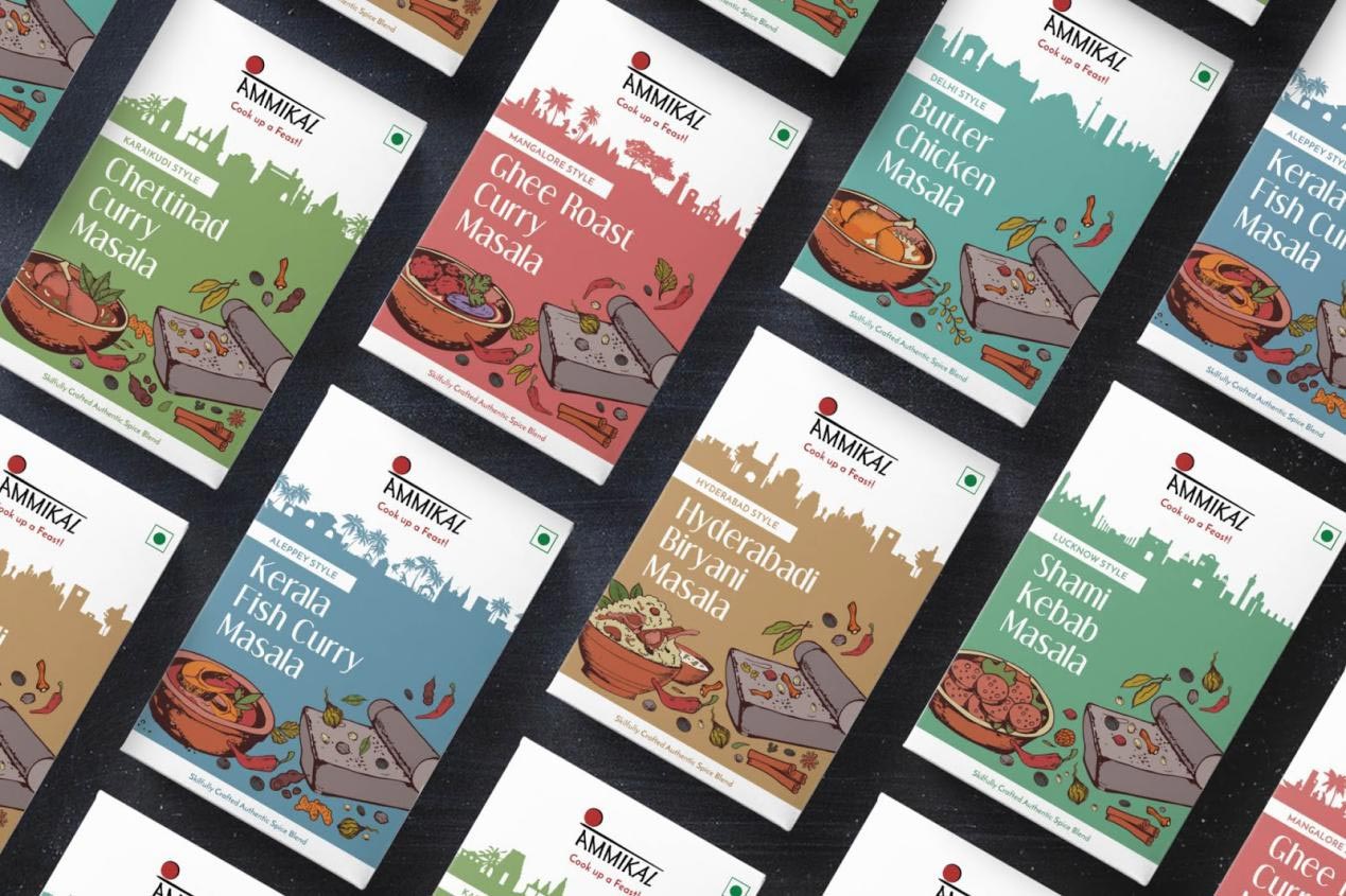 Ammikal是一個(gè)品牌,使用高檔的整體香料來制作正宗的印度香料。簡報(bào)是將包裝重新設(shè)計(jì)成批量優(yōu)質(zhì)產(chǎn)品,從而可以在印度所有可用的masala品牌中脫穎而出。還要求每個(gè)包裝都針對(duì)特定地區(qū)并具有很強(qiáng)的類別關(guān)聯(lián)。