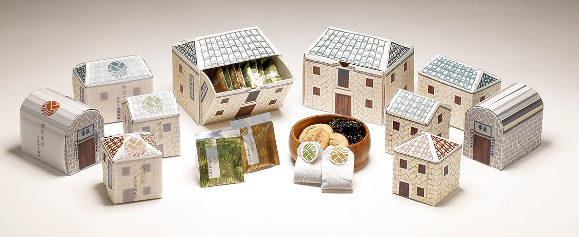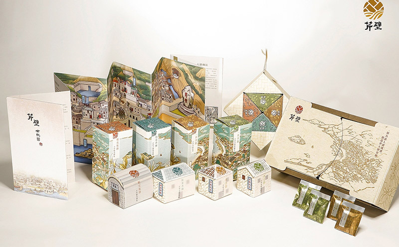 芹壁村位于臺(tái)灣的馬祖外島,有人稱它為「東方地中?!?它以豐富的海洋文化及閩東花崗巖石屋建筑聞名。我們將當(dāng)?shù)氐奶禺a(chǎn)「金銀花茶」結(jié)合在地文化設(shè)計(jì)作出一套包裝。