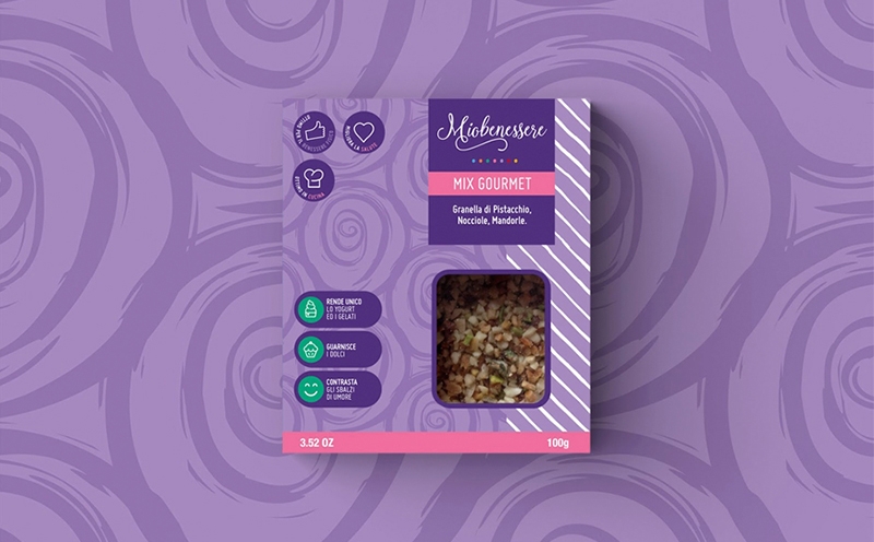 “Miobenessere”是一個(gè)干果品牌,因?yàn)楸Y|(zhì)期時(shí)間短,所以更新新產(chǎn)品的速度很快。干果的產(chǎn)品包裝在設(shè)計(jì)上采用特定顏色和紋理,通過(guò)不同顏色的和紋理包裝設(shè)計(jì)來(lái)體現(xiàn)不同的口味,并且每個(gè)干果包裝上用一組圖標(biāo)簡(jiǎn)要說(shuō)明每個(gè)產(chǎn)品的有益性質(zhì)及每種混合料的特征,一目了然,每款包裝上都設(shè)計(jì)了一個(gè)小窗口,以方便消費(fèi)者的直觀的看到里面的產(chǎn)品。在現(xiàn)代消費(fèi)市場(chǎng)中競(jìng)爭(zhēng)日益激烈,我們需要增強(qiáng)產(chǎn)品包裝的色彩和圖案生動(dòng)活潑,已達(dá)到產(chǎn)品包裝的差異化,而關(guān)心食品的健康和營(yíng)養(yǎng)成為現(xiàn)在的一個(gè)設(shè)計(jì)點(diǎn)?!癕iobenessere”以幫助人們實(shí)現(xiàn)和保持健康平衡的生活方式為設(shè)計(jì)出發(fā)點(diǎn),自然脫穎而出。