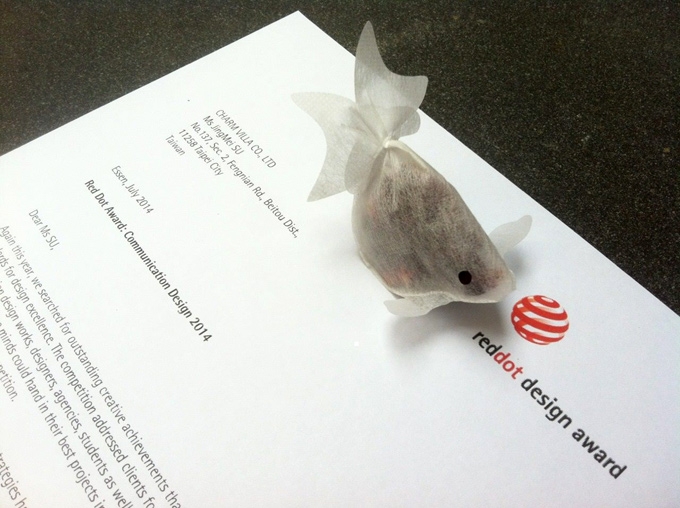 變成金魚在杯子里游來游去,將透明干凈的水化為了一杯好喝的茶,這個(gè)創(chuàng)意十分有趣。